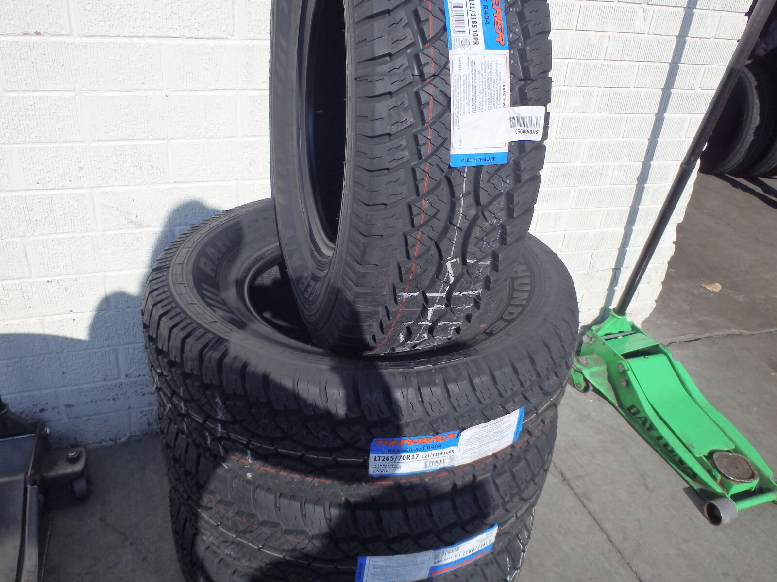 J&J TIRES & WHEELS SET OF BRAND NEW TIRES LT265/70R17 THUNDERER RANGER A/T R404 LOAD RANGE E FOR ONLY $560 THESE IS A GREAT TIRES FOR ANY WEATHER CONDITIONS, WE WILL INSTALL THEM FOR AN ADDITIONAL $20.00 PER TIRE INSTALLATION INCLUDES MOUNTING,BALANCING,VALVE STEAM AND TIRES DISPOSAL FEE,CALL FOR ANY QUESTIONS AT JOSE OR ROBERTO 801-878-4556 801-410-4460 OR VISIT US,WE'RE OPEN MONDAY TO SATURDAY FROM 9:00 AM TO 6:00 PM..WE HAVE A LOT'S A MORE AN NEW TIRES AND WHEELS CALL US IF YOU ARE LOOKING FOR A DIFFERENT SIZE....