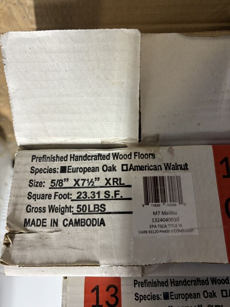 Bought this for a small project and never ended up using it. 5/8 thick and 7 1/2 wide prefinished, engineered wood flooring. I have 4 boxes that have 23 sq. ft. About 92 sq. ft. total. Asking $30.00 Text is the best way to reach me.