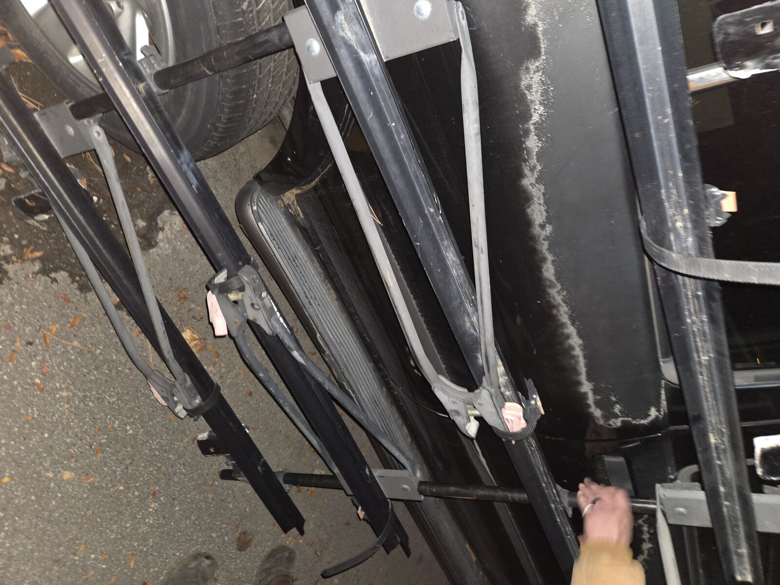The Yakima roof-mounted bike rack is a high-quality and durable unit designed to carry two individual bikes securely on the roof of a car. The sleek black color and roof-mounting type make it a stylish and practical choice for transporting your bikes to your destination. Made in the United States by the trusted brand Yakima, this bike rack is a reliable and efficient solution for cyclists looking to bring their bikes along for the ride.