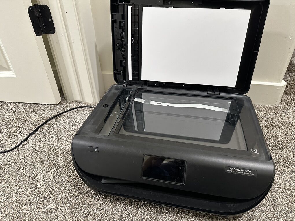 ApplePayHP OfficeJet 4650 all-in-one printer. It can print, copy, scan, and fax. It works with both Wi-Fi and USB. The printer is in good working condition.