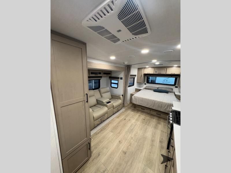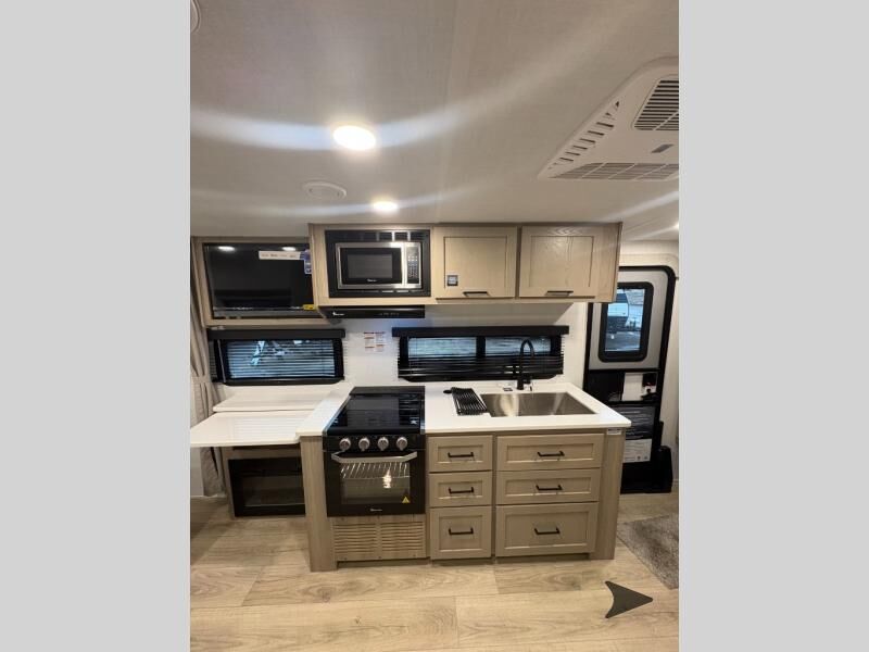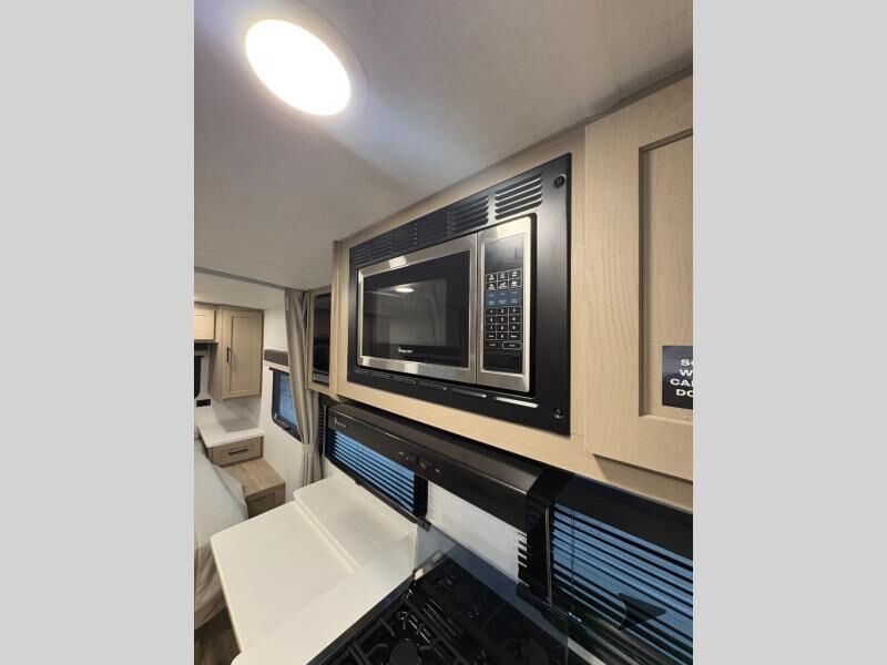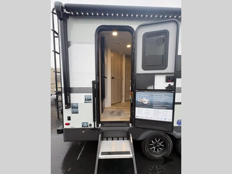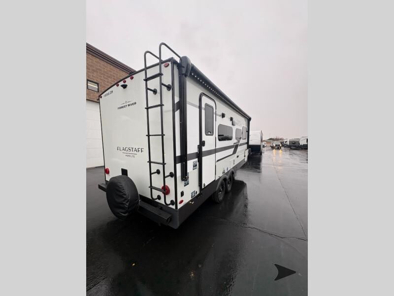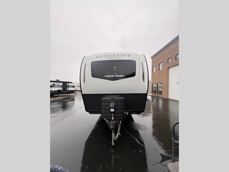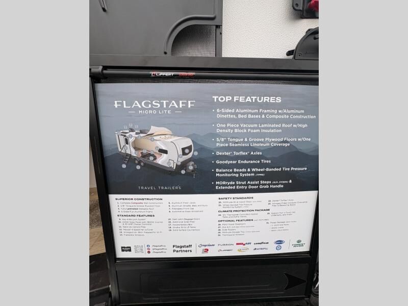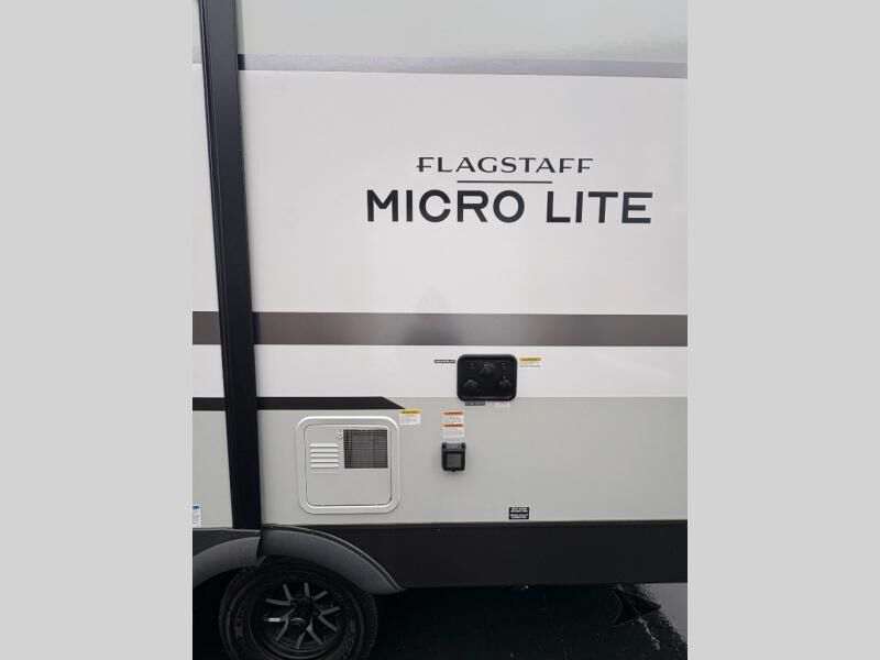 Forest River Flagstaff Micro Lite travel trailer 22FBS highlights: 67" Theater Seat with Tables RV Queen-Size Bed Flip-Up Storage Pass-Through Storage Fireplace Entryway Wardrobe Make your vacations everything you've always wanted them to be with this Flagstaff Micro Lite travel trailer! A full bathroom with a radius shower andlinen closetwill allow you to stay clean without having to find a public rest stop. There is also a three-burner range, a gas oven, and a 12 voltrefrigeratorthat will allow you to eat more than just fast food while you are away from home. You can even sleep just as comfortably as you do at home because the 60" x 74" RVqueen-size bed up front will provide a great night's rest. With any Flagstaff Micro Lite travel trailer by Forest River you will enjoy lightweight towing, durable construction, and added interior comforts to make each trip memorable! Each model features RoadTech tire pressure monitoring, Dexter Torflex axles, and nitrogen-filled Goodyear endurance tires for smooth towing from home to campground. The 6-sided aluminum framed construction provides a strong foundation so you can enjoy your RV for years to come, plus the radiant foil in the front cap, underbelly and slides help insulate your trailer. Additional exterior features include a 200W solar panel, back-up camera prep, frameless windows, and slam baggage doors. Each model includes the Great Expectations Package with roller shades, solid surface kitchen countertops, and hidden hinge cabinet doors. There is also an exterior hot/cold water port, outside speakers, a power tongue jack and stabilizer jacks, plus many more conveniences.