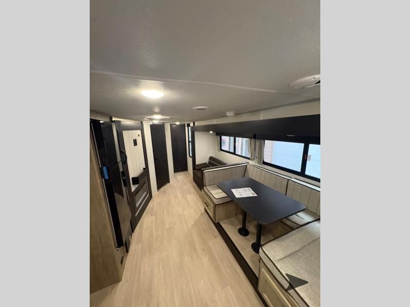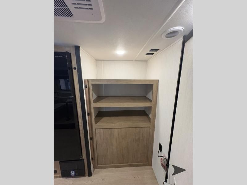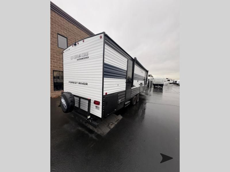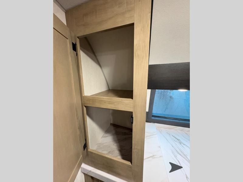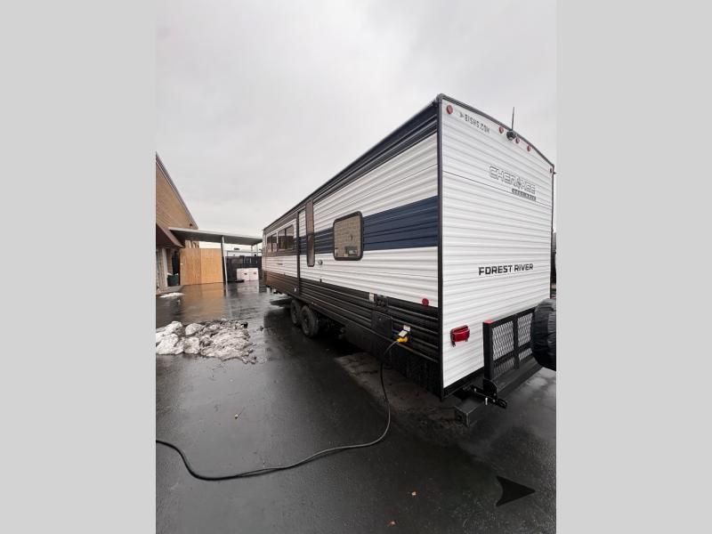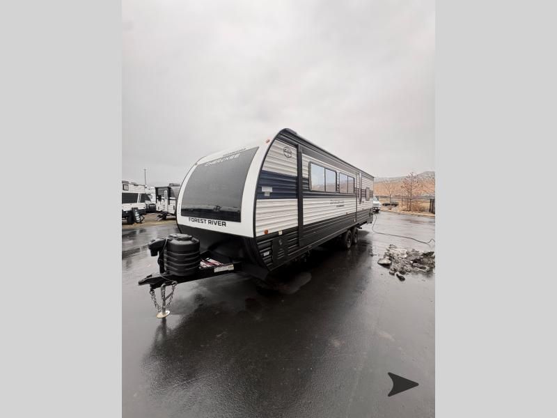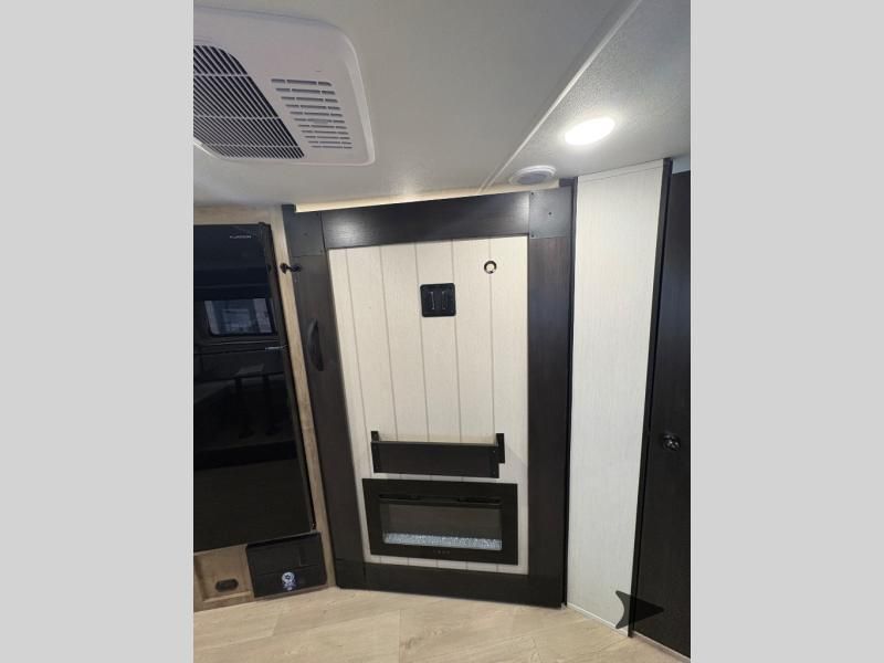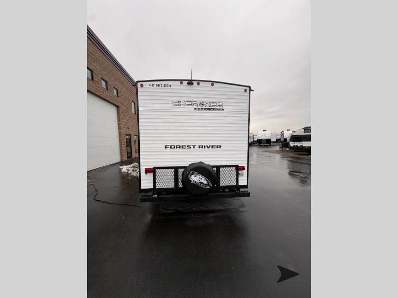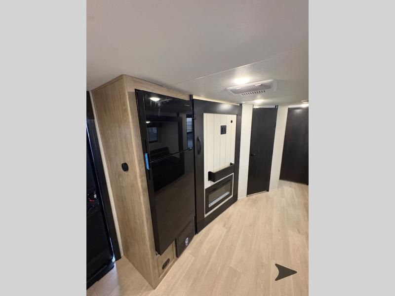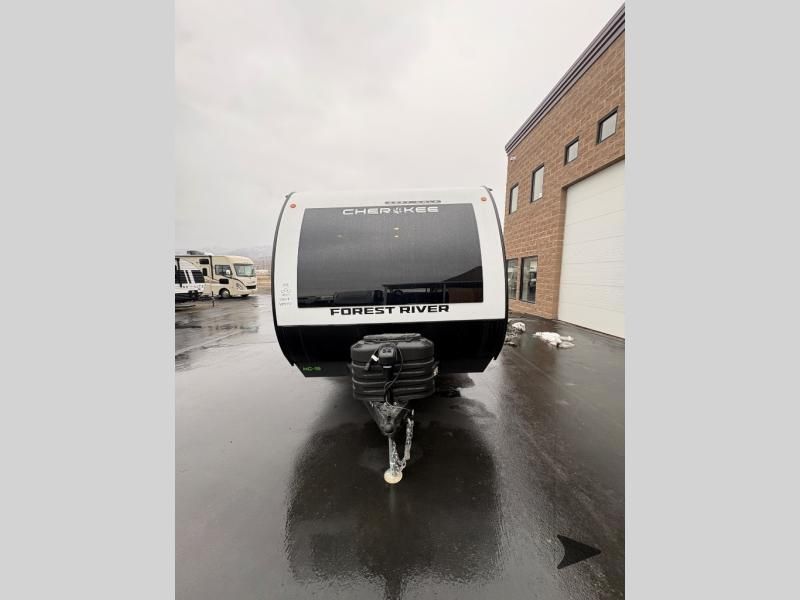 Forest River Cherokee Grey Wolf travel trailer 27GH highlights: Large Slide Out RV King Bed Outside Kitchen Rear Storage Rack Front Kitchen Since this travel trailer features dual entry doors, you can enter in through the rear master bedroom or the front kitchen; how convenient! The kitchen includes ample counter space and all the appliances to prep meals, along with a pantry up front and a hidden pantry behind the fireplace. Your crew can get comfortable on the sofa or play a game around the U-shaped dinette, although you may just find yourselves outdoors since there is an outside kitchen and a power awning with LED lights. The dual entry bath will let you enter in through the main living area, plus it has a private entrance into the bedroom. Here, you'll find an RV king bed, a wardrobe for your things, and USB ports to keep your electronics charged! The Cherokee Grey Wolf by Forest River feature distinctive features, at-home comforts, and durable construction materials so you can enjoy your RV for years to come, plus they are outstandingly affordable! You can choose between travel trailers, toy haulers, and even fish houses, depending on the camping style you prefer. You'll find many convenient amenities both inside and outside, along with comfortable seating and sleeping spaces, and plenty of storage for your personal belongings and camp gear!