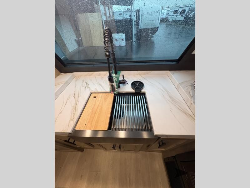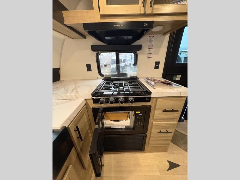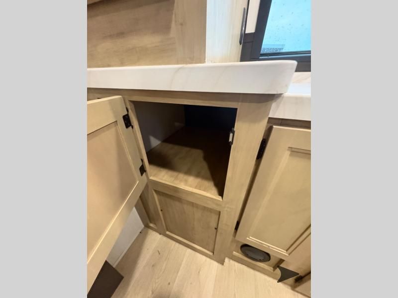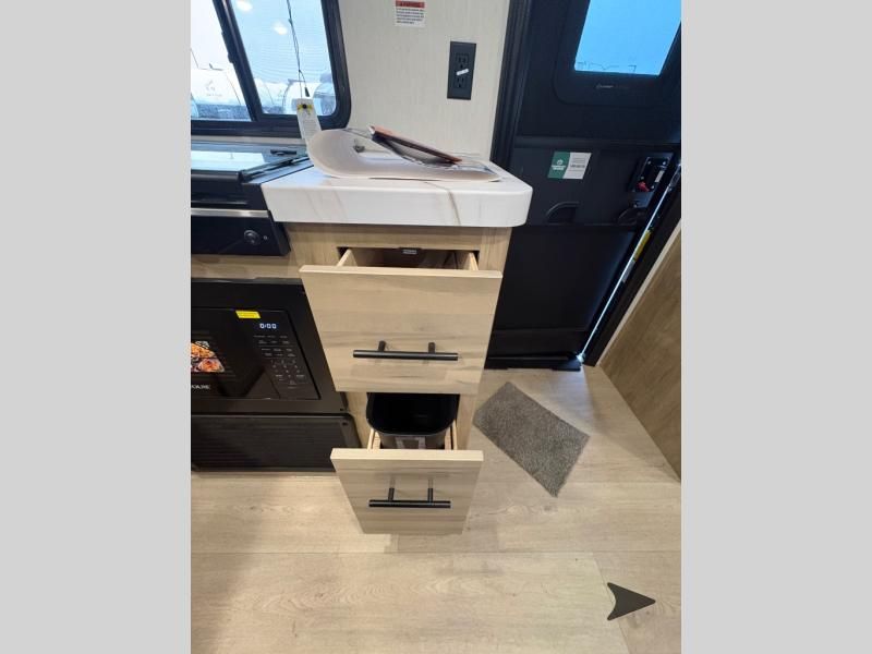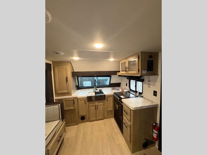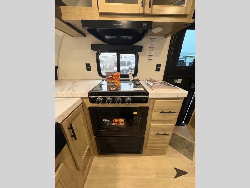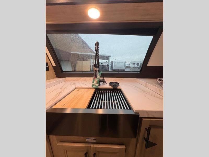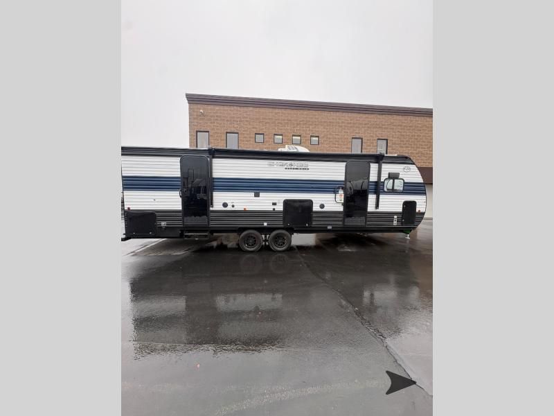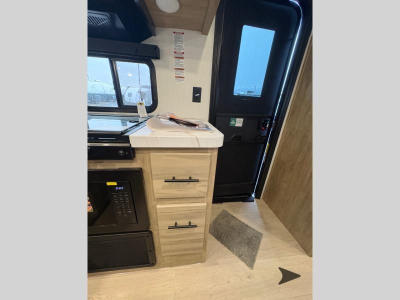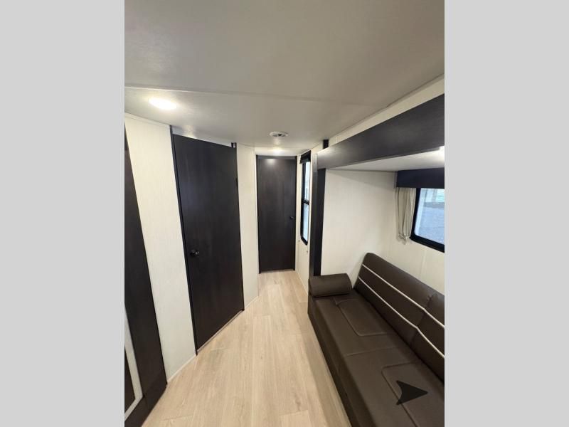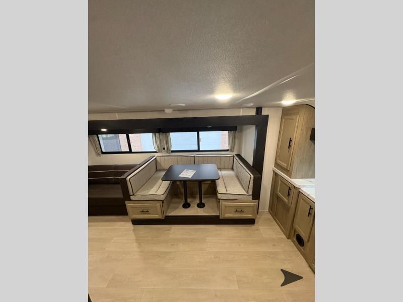 Forest River Cherokee Grey Wolf travel trailer 27GH highlights: Large Slide Out RV King Bed Outside Kitchen Rear Storage Rack Front Kitchen Since this travel trailer features dual entry doors, you can enter in through the rear master bedroom or the front kitchen; how convenient! The kitchen includes ample counter space and all the appliances to prep meals, along with a pantry up front and a hidden pantry behind the fireplace. Your crew can get comfortable on the sofa or play a game around the U-shaped dinette, although you may just find yourselves outdoors since there is an outside kitchen and a power awning with LED lights. The dual entry bath will let you enter in through the main living area, plus it has a private entrance into the bedroom. Here, you'll find an RV king bed, a wardrobe for your things, and USB ports to keep your electronics charged! The Cherokee Grey Wolf by Forest River feature distinctive features, at-home comforts, and durable construction materials so you can enjoy your RV for years to come, plus they are outstandingly affordable! You can choose between travel trailers, toy haulers, and even fish houses, depending on the camping style you prefer. You'll find many convenient amenities both inside and outside, along with comfortable seating and sleeping spaces, and plenty of storage for your personal belongings and camp gear!