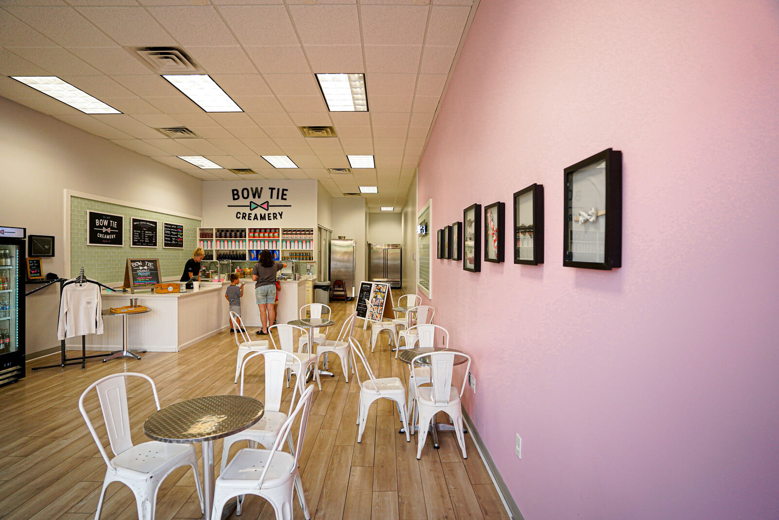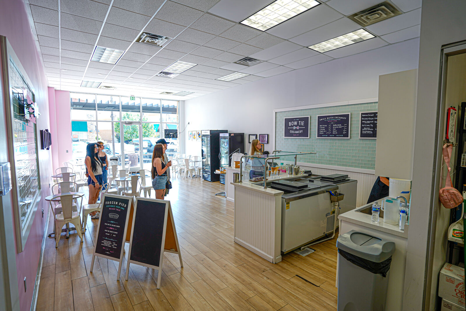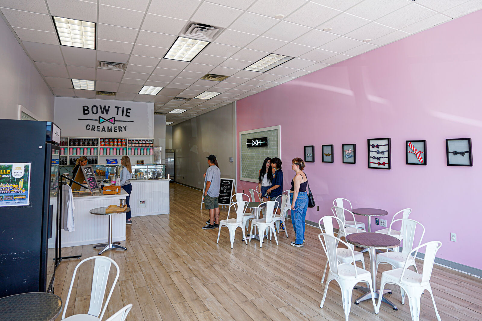 Former Bow-Tie Creamery Space for lease. Perfect space for ice cream, dessert, sandwhich, tea, etc.