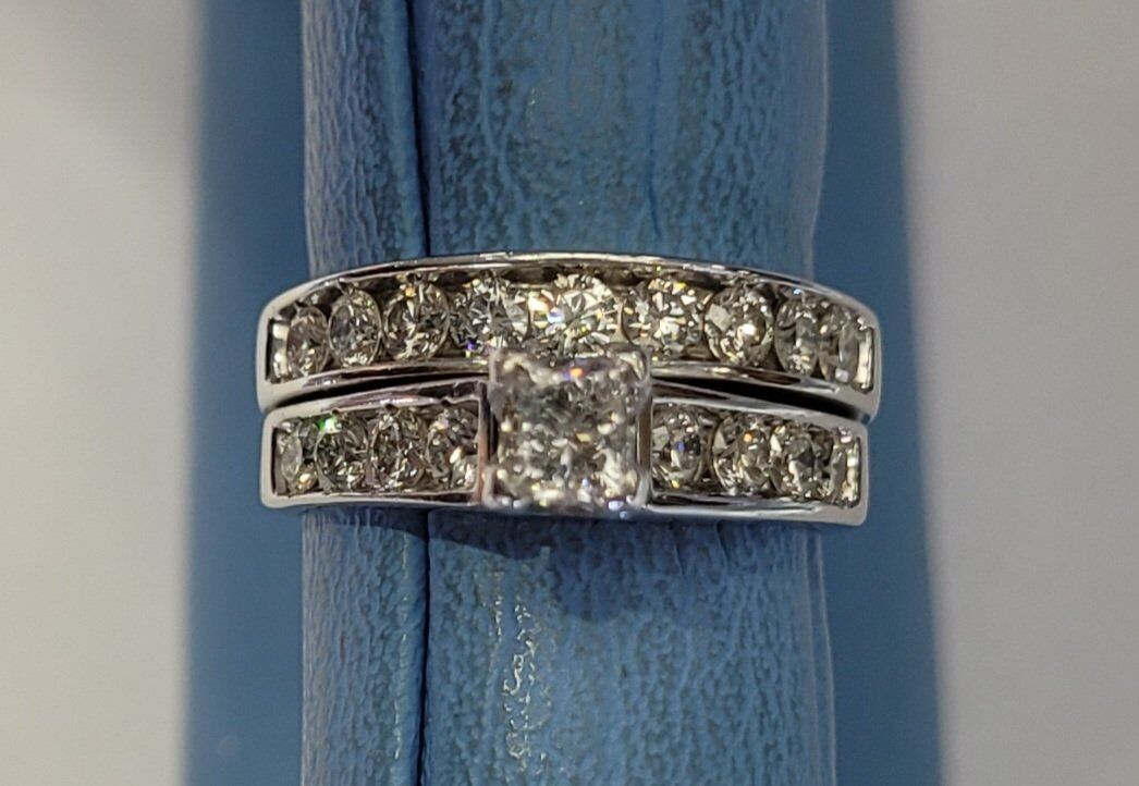 VenmoThis a real nice size 5.5 2 karat princess cut diamond ring with 14k white gold the middle diamond is .25 karat I am looking to sale this ring it is in really good shape it has just recently been cleaned as well. RESIZING IS FREE