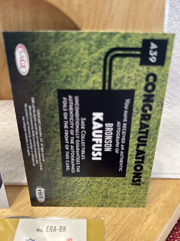 ApplePay(1) Bronson Kaufusi Rookie Card SAGE HIT BYU RC Autographed Football Card Hand Signed.