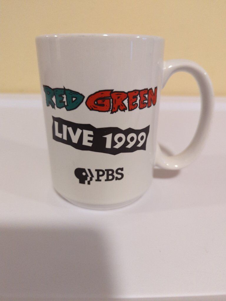 Venmo"Relax! I'm fixin' coffee" Red Green Show mug picture of Red with duct tape vintage collectors 1999 PBS