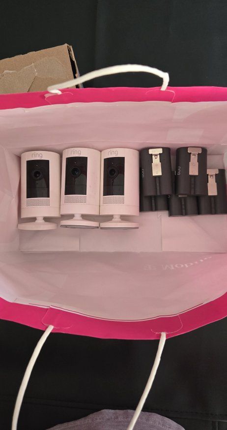 Used ring video doorbell 2, Works great just changing my setup... Totally everything you need to hook up all paper work, instructions.. Wired with battery backup.. Plus 3 ring cams with 5 batteries...