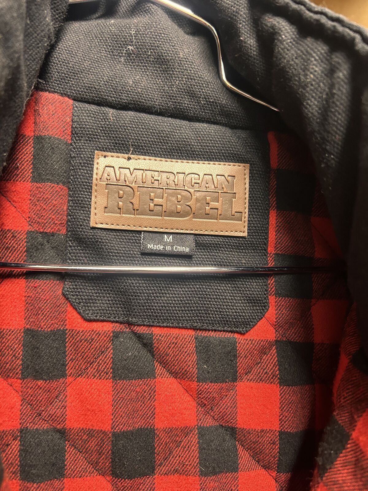 VenmoHeavy duty concealed carry canvas vest. American Rebel Flannel lined. Full zip front. Left or right hand inside carry pockets. Outside pockets, interior chest pockets - both sides. Full zip front Excellent condition other than a couple skuffs. size MD but runs big. $37