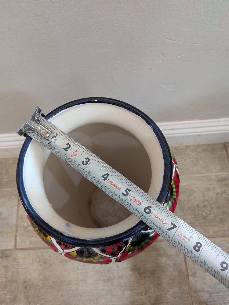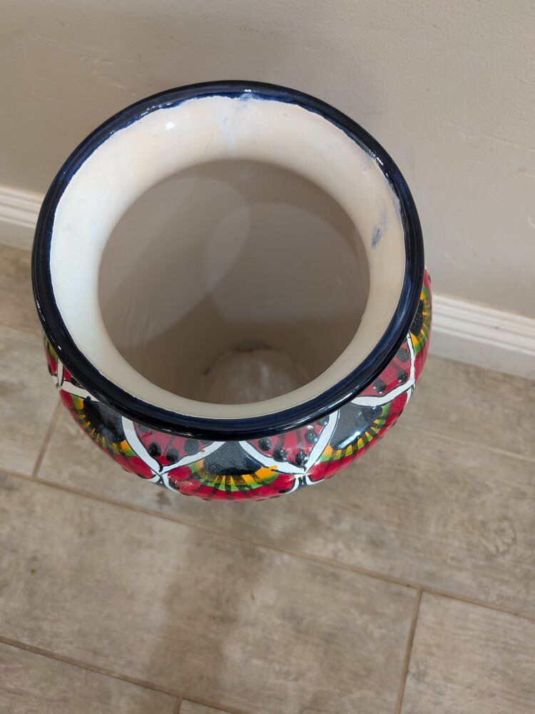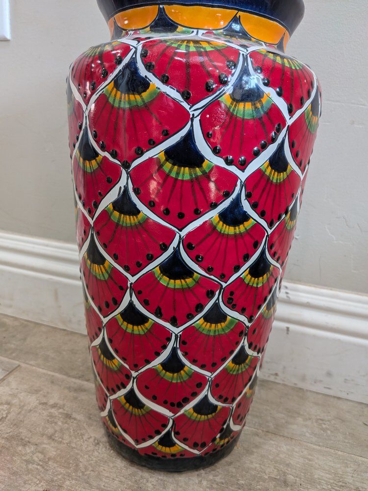 Hand-painted Mexican Talavera ceramic vase. Beautiful pattern and in good condition. Measurements in photos.