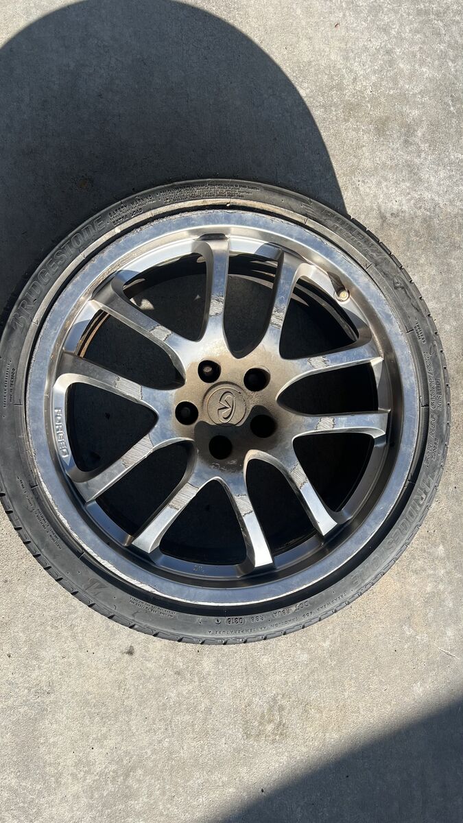 TIRE IS IN EXCELLENT CONDITION. INFINITI WHEEL SCRAPED UP