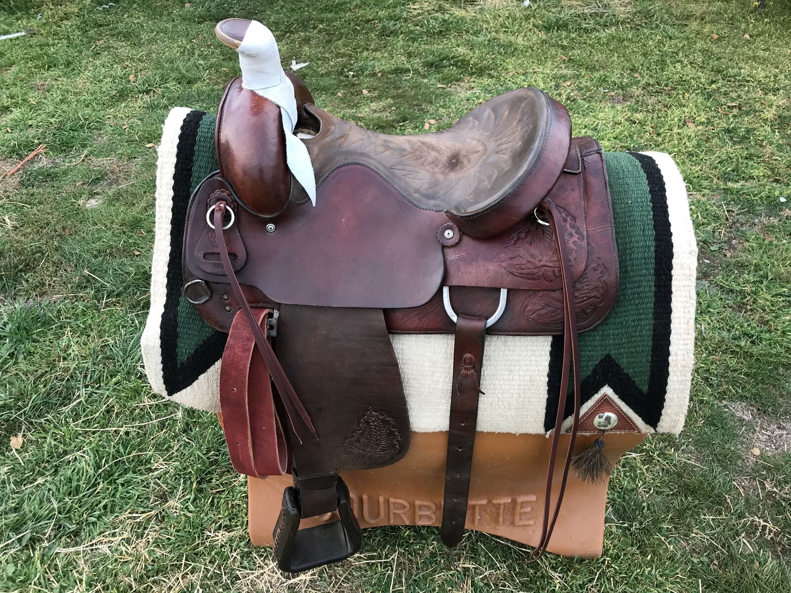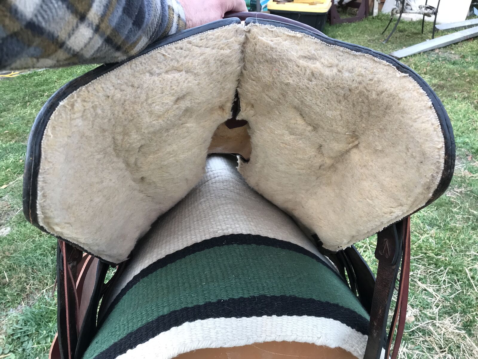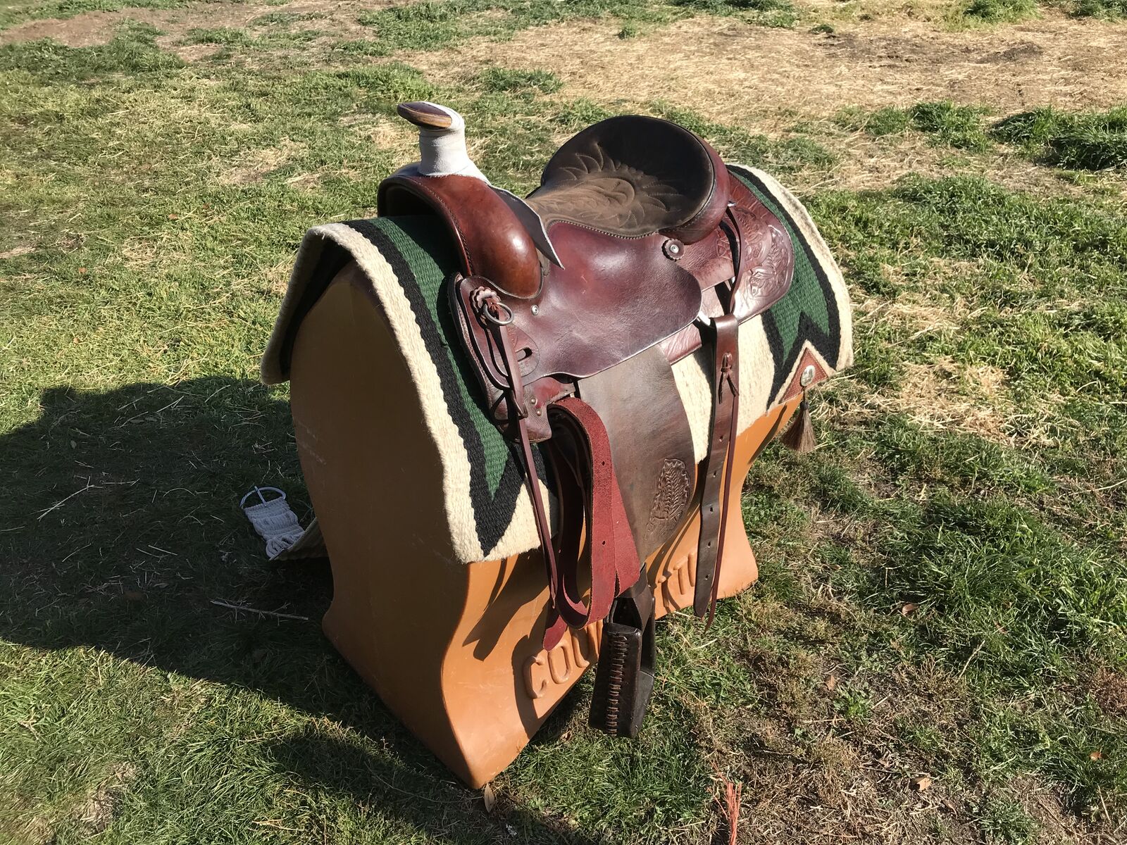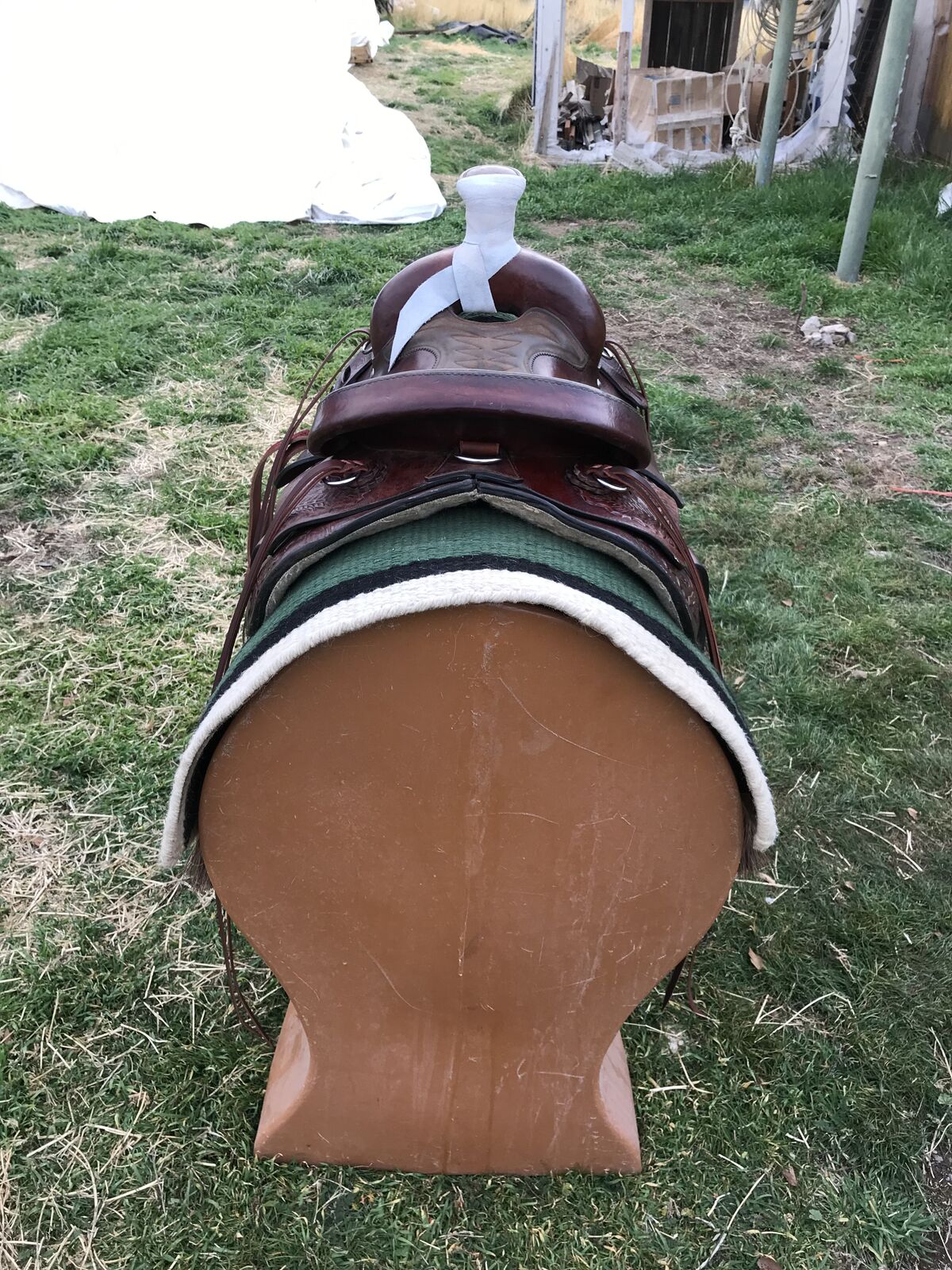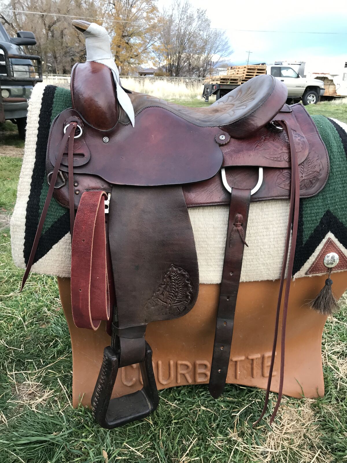 VenmoThis used roping saddle comes with front and back cinches, and is ready to throw on a mount. It is in great condition and still has a little bit of new-saddle squeak. The saddle features a padded seat, and strings and rings in the front and rear To clip and tie your gear on. The rear strings are long enough to tie on your bedroll, tent, and rain slicker. I put on a new mulehide horn wrap to protect the horn cover. The horn is perfect underneath. The gullet measures 8.5". The cantle is 3.5" high. This would be a great hunting/mountain/trail saddle.