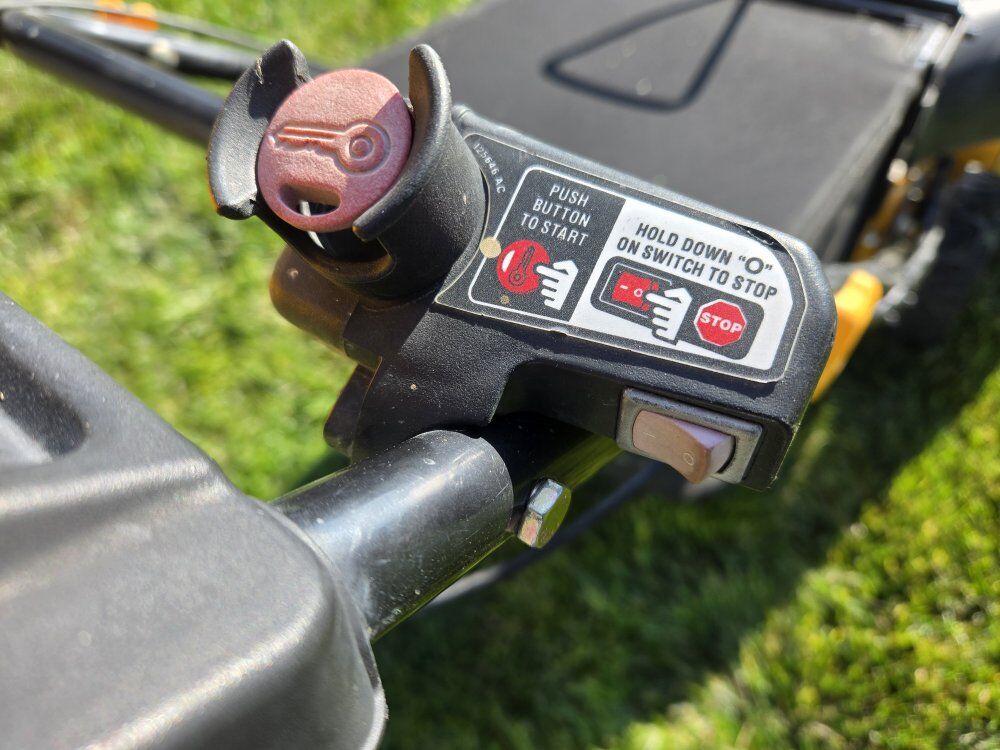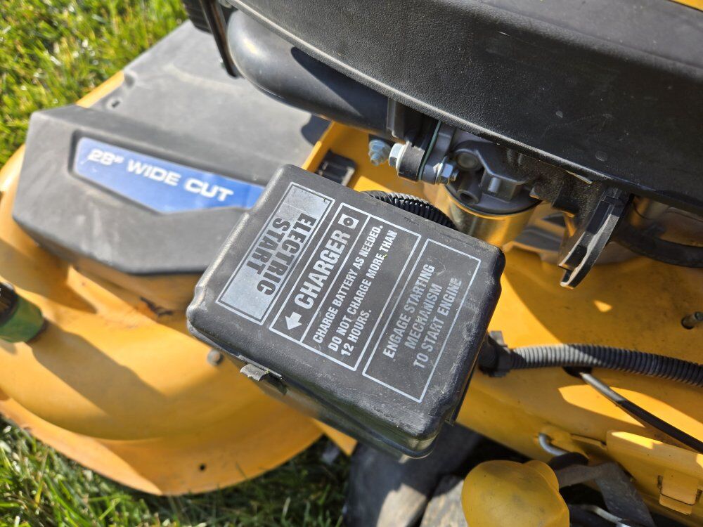 Electric start -->New battery and charger Swivel front wheels for easy turning Bag or mulch Sharpened blades New full synthetic oil New OEM ignition coil