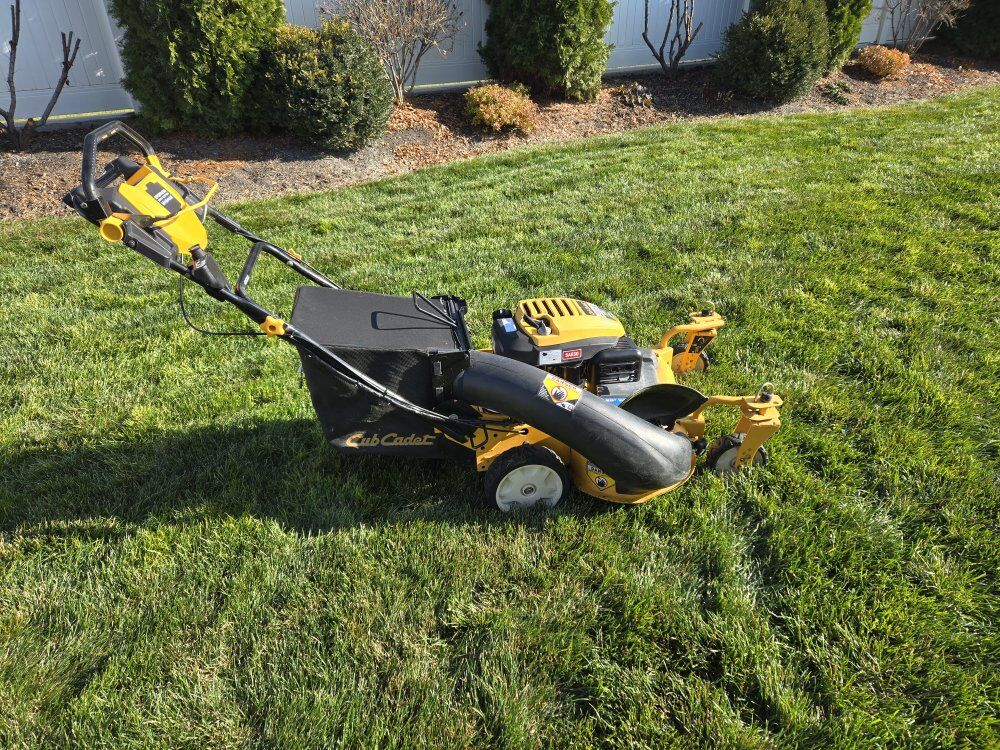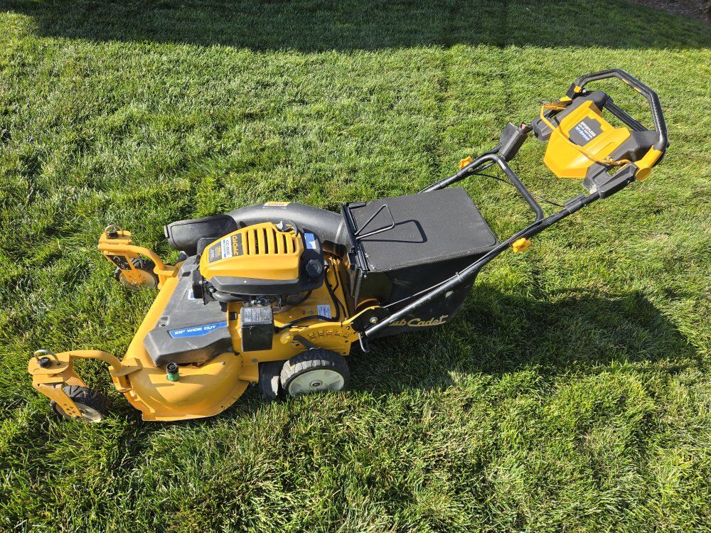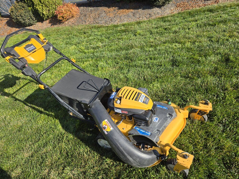 28 inch cut, Self-Propelled, dual blade Cub Cadet cc600 is the answer.