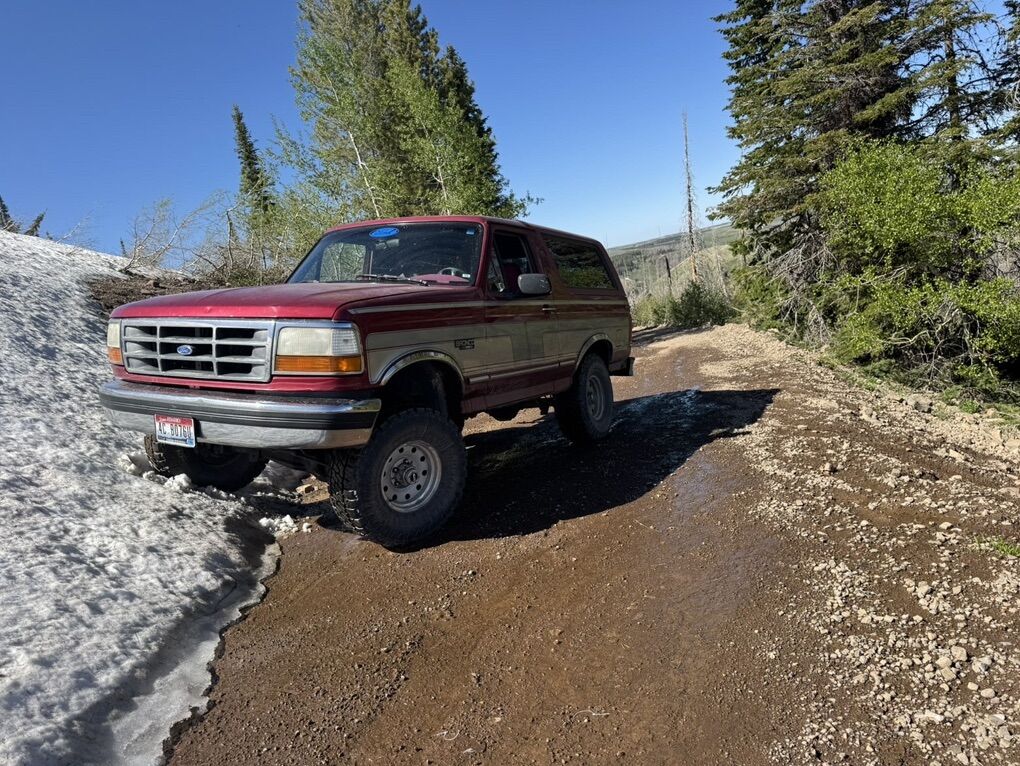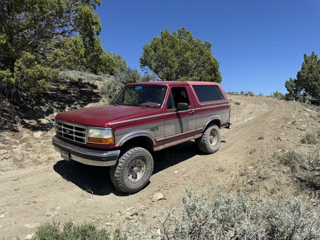 1994 Ford Bronco trade for 2011 and up f150 (5.0 only) or 2004 and up Chevy or Gmc truck (Prefer crew cab) 236k ish miles, 4x4 works, auto trans, has some rust, grey interior, full size spare tire, runs and drives great heat and ac both work,pretty cool 90s graphics that set it apart from the other, rear main seal leak, factory Alcoa style stocks wheels, 33x12.50r15 tires, 4 inch Lift, brand new shocks (bilstein 5100) all the way around and excellent tread on all the tires back window rolls up and down with the key in the tailgate aftermarket radio non Bluetooth, the only thing not really working is cruise control.