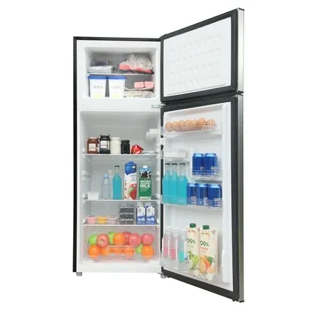 7.5 cu. ft. of standard storage capacity lets you stock up on all of your favorite foods Easily accessible temperature controls make temperature management easy New Spill-proof glass shelves contain spills and simplify cleanup, preventing liquids from leaking on to shelves below Sleek platinum design adds a touch of elegance to any space Transparent crisper for easy visibility and organization of fresh produce Interior light illuminates the contents for convenient access, even in low light Reversible door allows for flexible placement and convenient access options Dedicated freezer compartment for frozen food storage Adjustable and removable glass shelves for customizable storage options Full-width door bin for convenient storage of bottles and larger items
