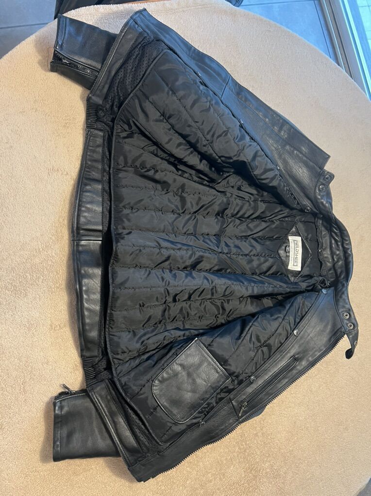 VenmoBlack leather with body armor and insulated liner. Size 48/58.