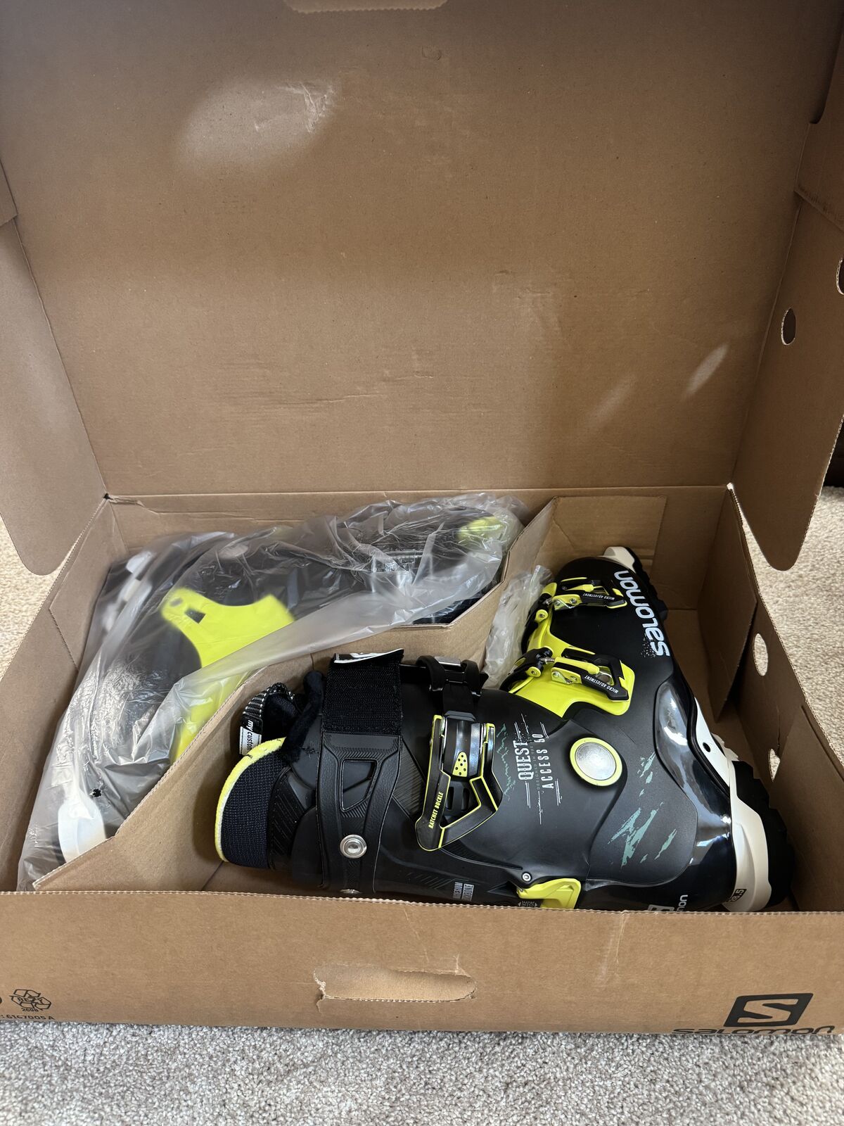 VenmoConquer the backcountry with confidence in these Salomon Quest Access 90 ski boots. Designed for lightweight performance and uphill efficiency, they offer a precise fit, excellent power transfer, and comfort for long days in the mountains. Brand new in box, never worn.