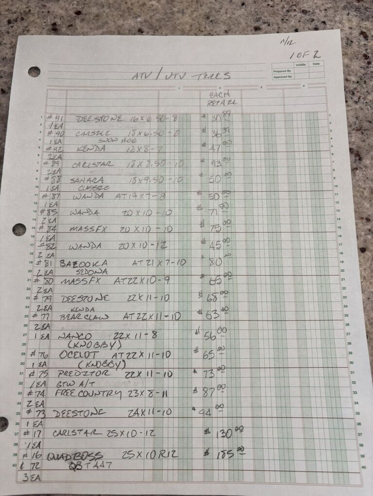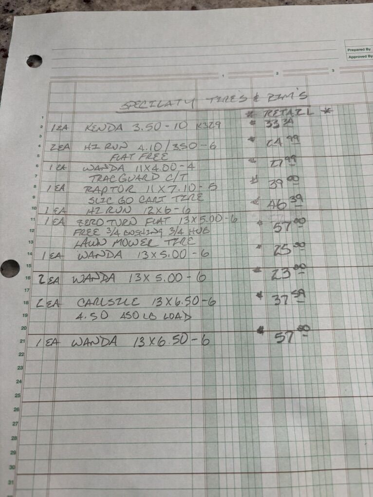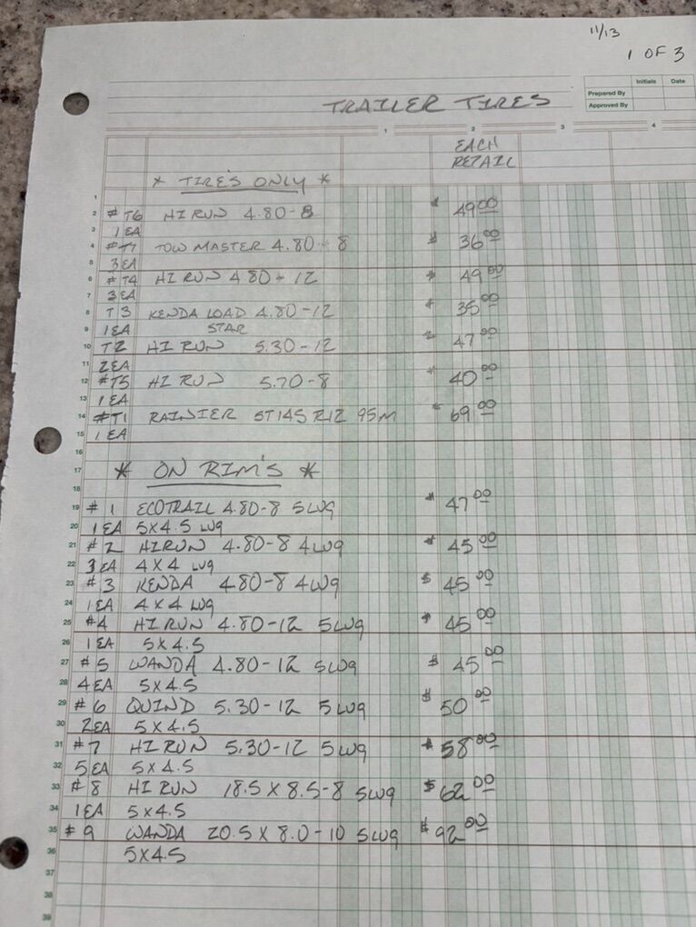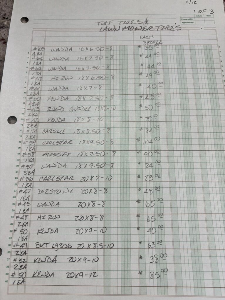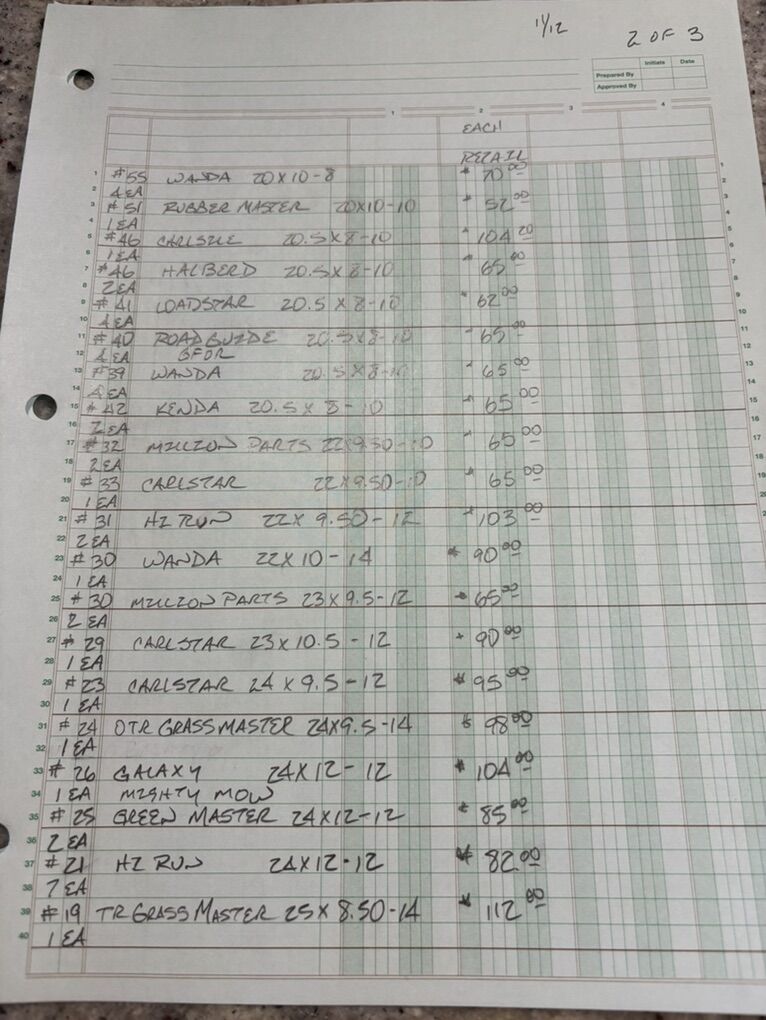 Liquidating Everything Must Go , I’m needing to sell my tire business, contains ATV, UTV, trailer, tires and rims, turf tires, which would include lawnmower, tires, as well as Golf Course equipment Tires, specialty Tires some with rims. Needing to sell due to health issues unable to keep selling these items. If you are interested, please contact me so I can advise what we can discuss a price of the all items.