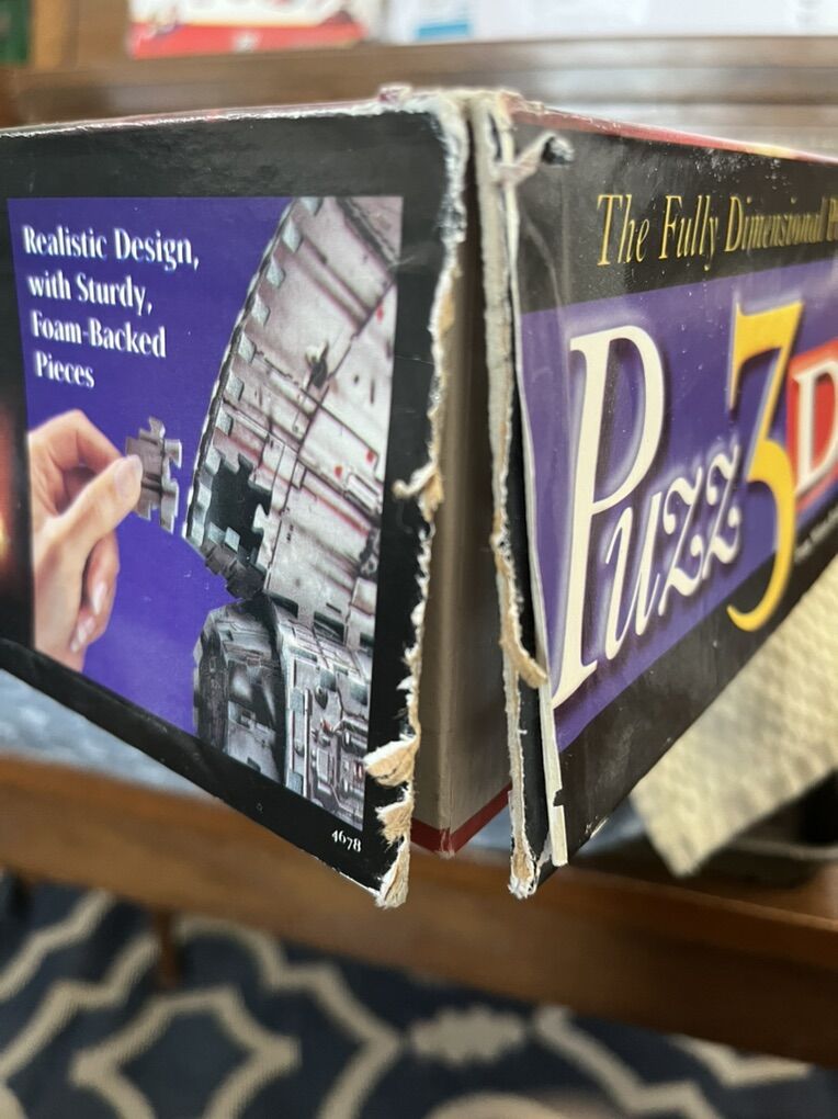 There is a black sticker that needs to be carefully removed from the box to place onto the puzzle. That’s why I marked it as good, minimal wear.