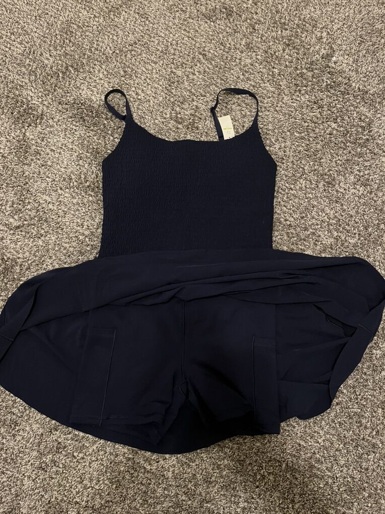 ZelleSize: medium Dress never used, tag still attached. Shorts attached with pockets on the sides. Stretchy while also flowy.