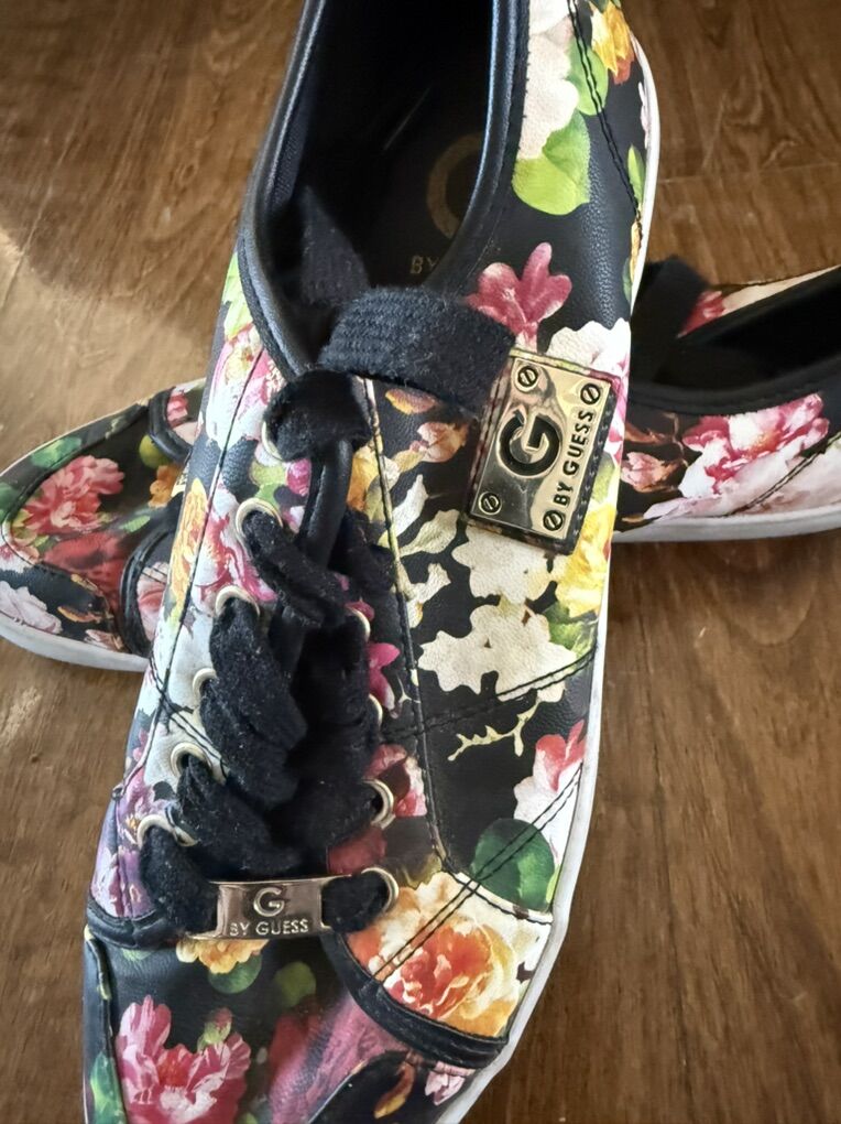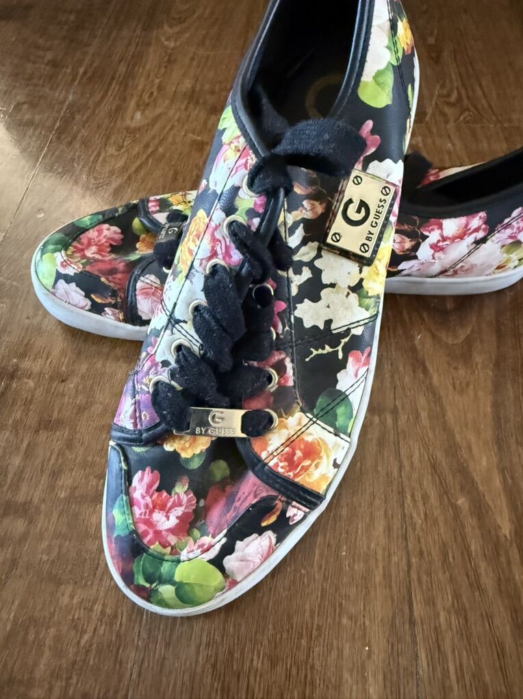Floral shoes G by guess 8 1/2 M black with gold accents