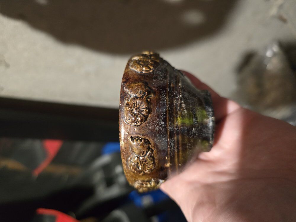 ENGLISH MAJOLICA Green Brown Floral Daisy Pattern CUP