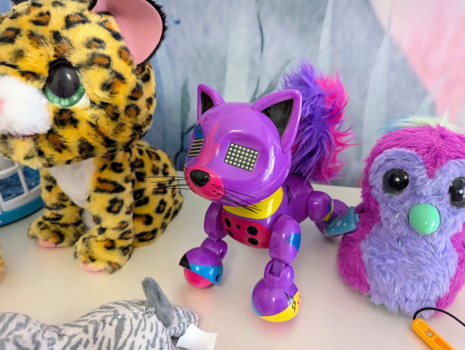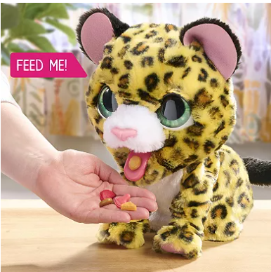 -FurReal Lil' Wilds Lolly the Leopard - ($20) Lolly turns on, laughs, roars, purs, and actually sticks out her tongue to eat her magnetic treats. Then she poops them out and you get them from a trap door at the bottom.