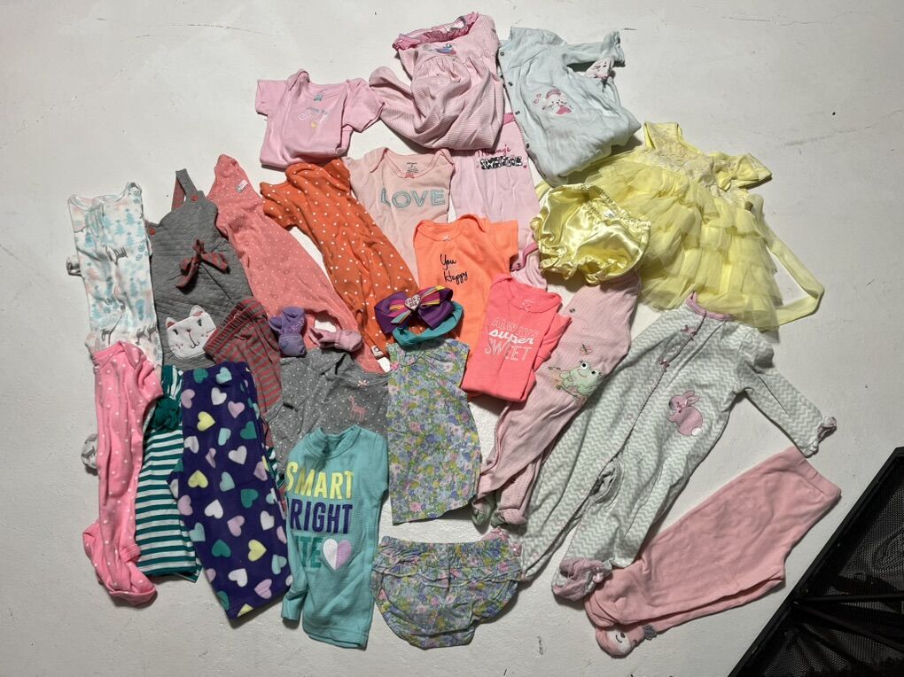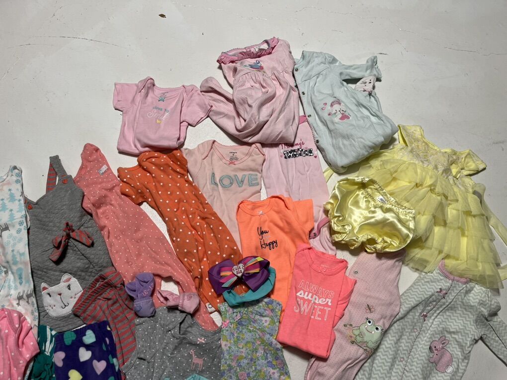 Baby girls clothing sleepers, onesies ,dresses 6 months 28 items $20.00 all