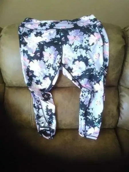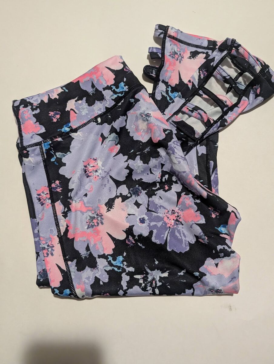 White/Purple/Black Floral Leggings Size: XL "Capri's?" $6