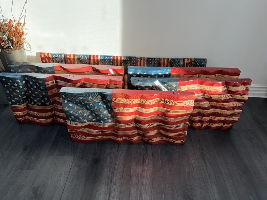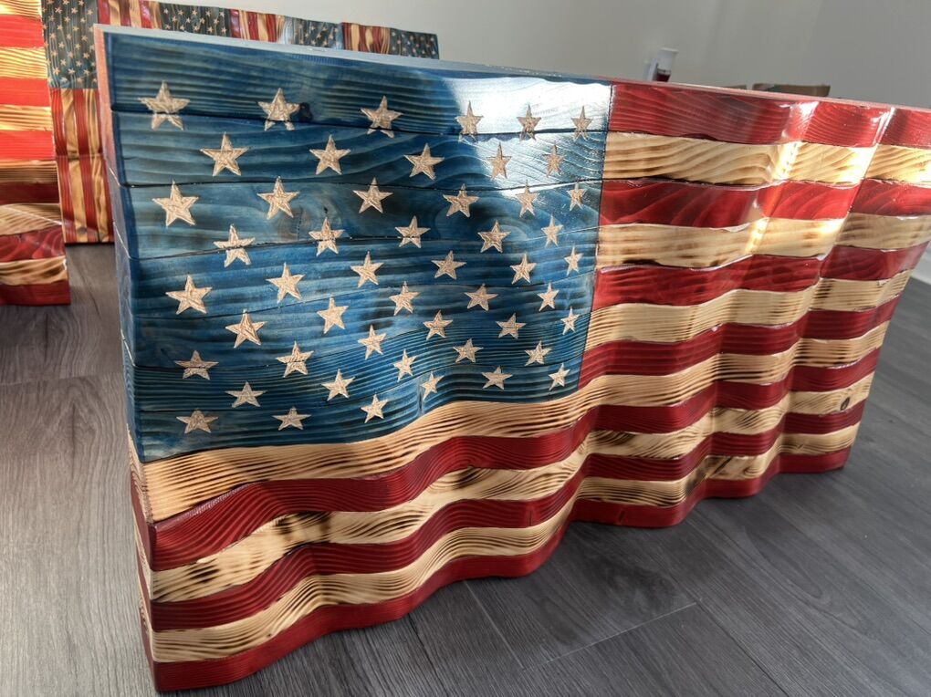 VenmoMany styles to choose from, and each is unique. No flag is the same. These are all personally Handcrafted, sanded, torched for a custom burned look. Assembled and sealed with 4 coats of gloss finish