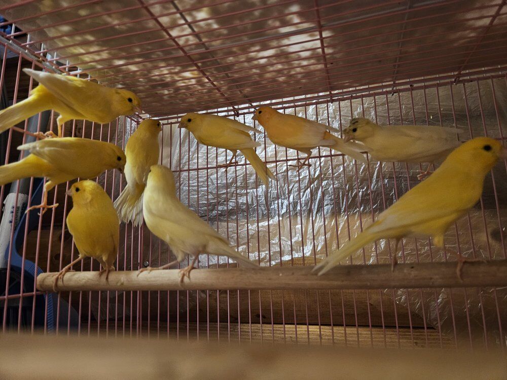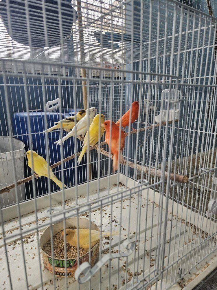 I have some beautiful canaries available, ranging from 6 months to 2 years old. I do have a male singer available. I'm quite a few singers as well. The price range is $100 to $150, depending on the color. Orange $150 Sold Red/Mosaic $140 Sold White $150 Yellow $130 yellow mix $120 Grey/brown $100 Also have cages that can show you at the location