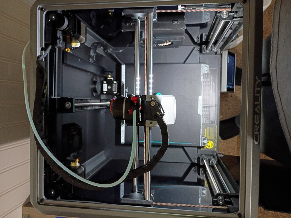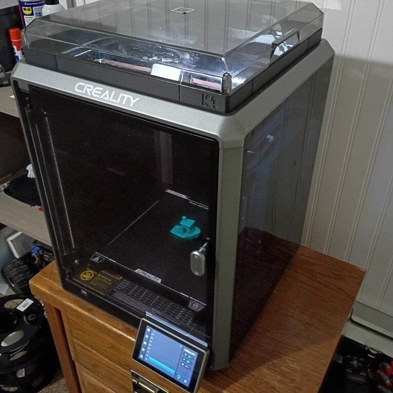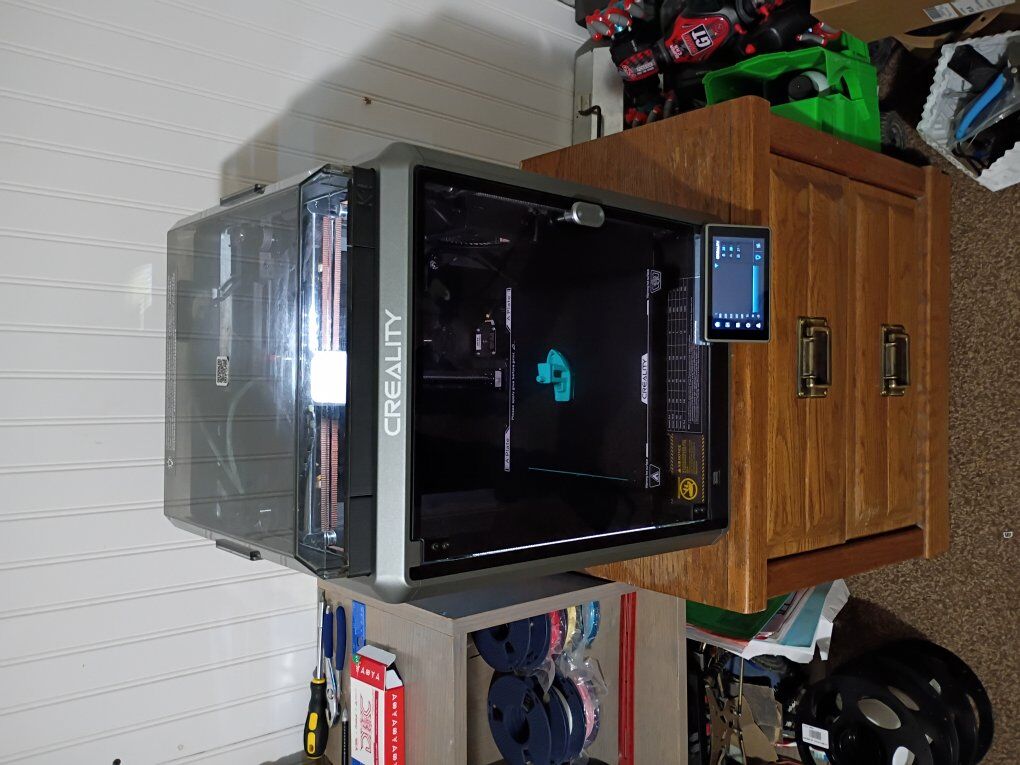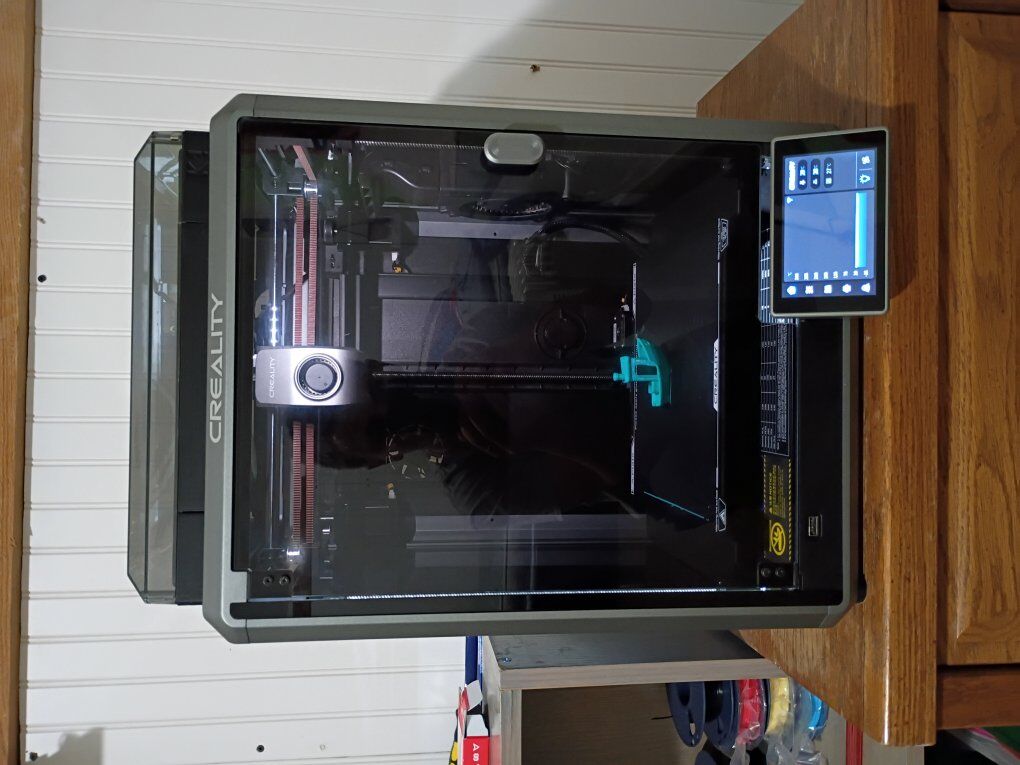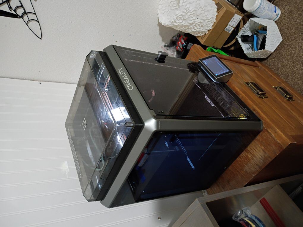 VenmoCreality K1 with upgraded Devil Design/Creality DXC extruder. Upgraded hardened steel nozzle. The extruder has a filament runout sensor at the extruder which helps to minimize waste! High speed core XY FDM 3D printer 220mm x 220mm x 250mm print volume max print speed 600mm/s can print multiple materials besides the standard PLA including high temp materials like ABS, PETG,TPU, and ASA as well as other materials. This printer has ZERO issues, and is actively being used for prints. Fully enclosed, with multiple cooling and exhaust fans for precise temperature control, and Auto leveling bed. Wifi enabled, with a large touch screen controller. Also has the ability to have an internal camera(not included). lots of tools and grease included.