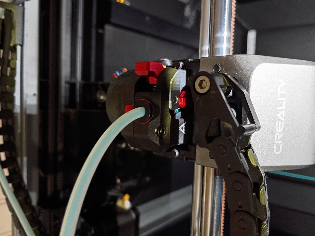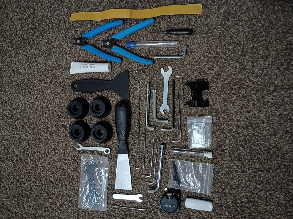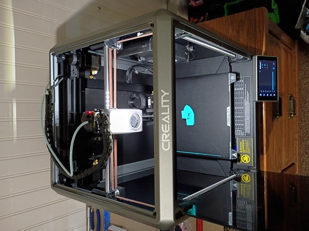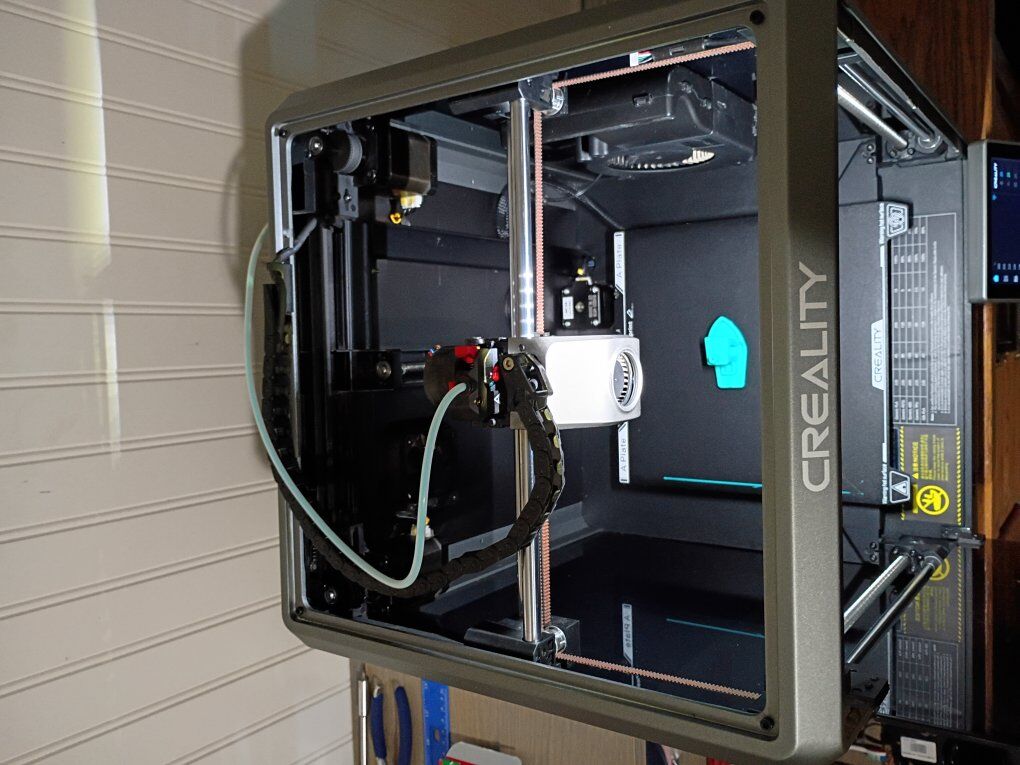 VenmoCreality K1 with upgraded Devil Design/Creality DXC extruder. Upgraded hardened steel nozzle. The extruder has a filament runout sensor at the extruder which helps to minimize waste! High speed core XY FDM 3D printer 220mm x 220mm x 250mm print volume max print speed 600mm/s can print multiple materials besides the standard PLA including high temp materials like ABS, PETG,TPU, and ASA as well as other materials. This printer has ZERO issues, and is actively being used for prints. Fully enclosed, with multiple cooling and exhaust fans for precise temperature control, and Auto leveling bed. Wifi enabled, with a large touch screen controller. Also has the ability to have an internal camera(not included). lots of tools and grease included.