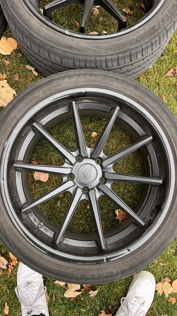 VenmoSome wheels have noticeable damage, including Ferrada’s notorious paint chipping problem. One has a deep gouge while others have minor scratches. A lot of miles were put on these wheels. They need new tires but are currently wrapped in Lionhart 305/35/22’s. All lug nuts plus the key are included.