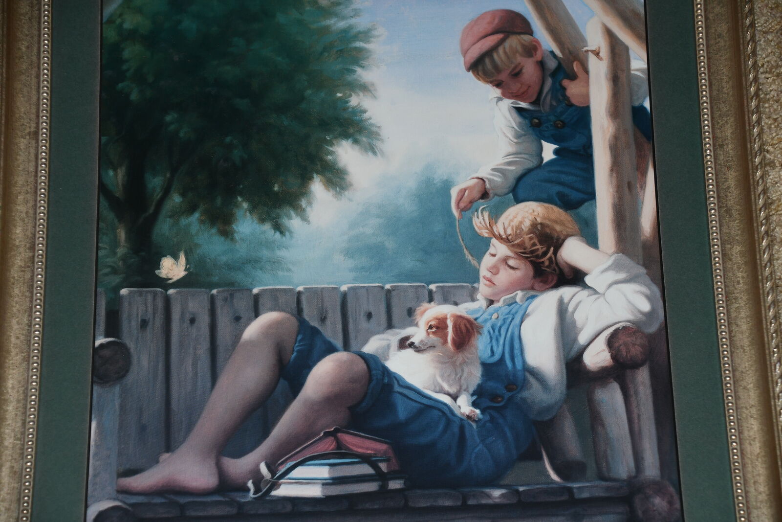 This 2 LITTLE BOYS & A PUPPY PICTURE is about 16" x 20" FRAMED. Our home is smoke free. Questions??? Please ask. We are located in Plain City. Cash only please.