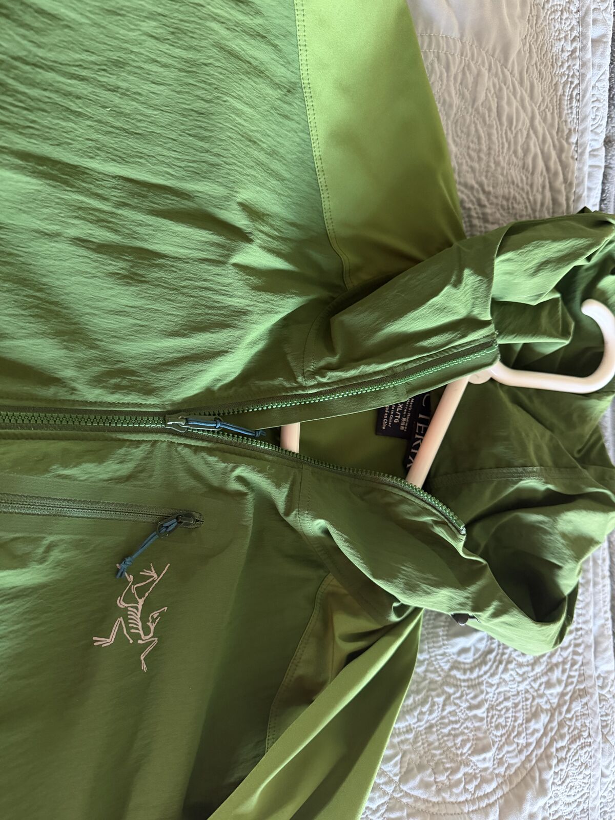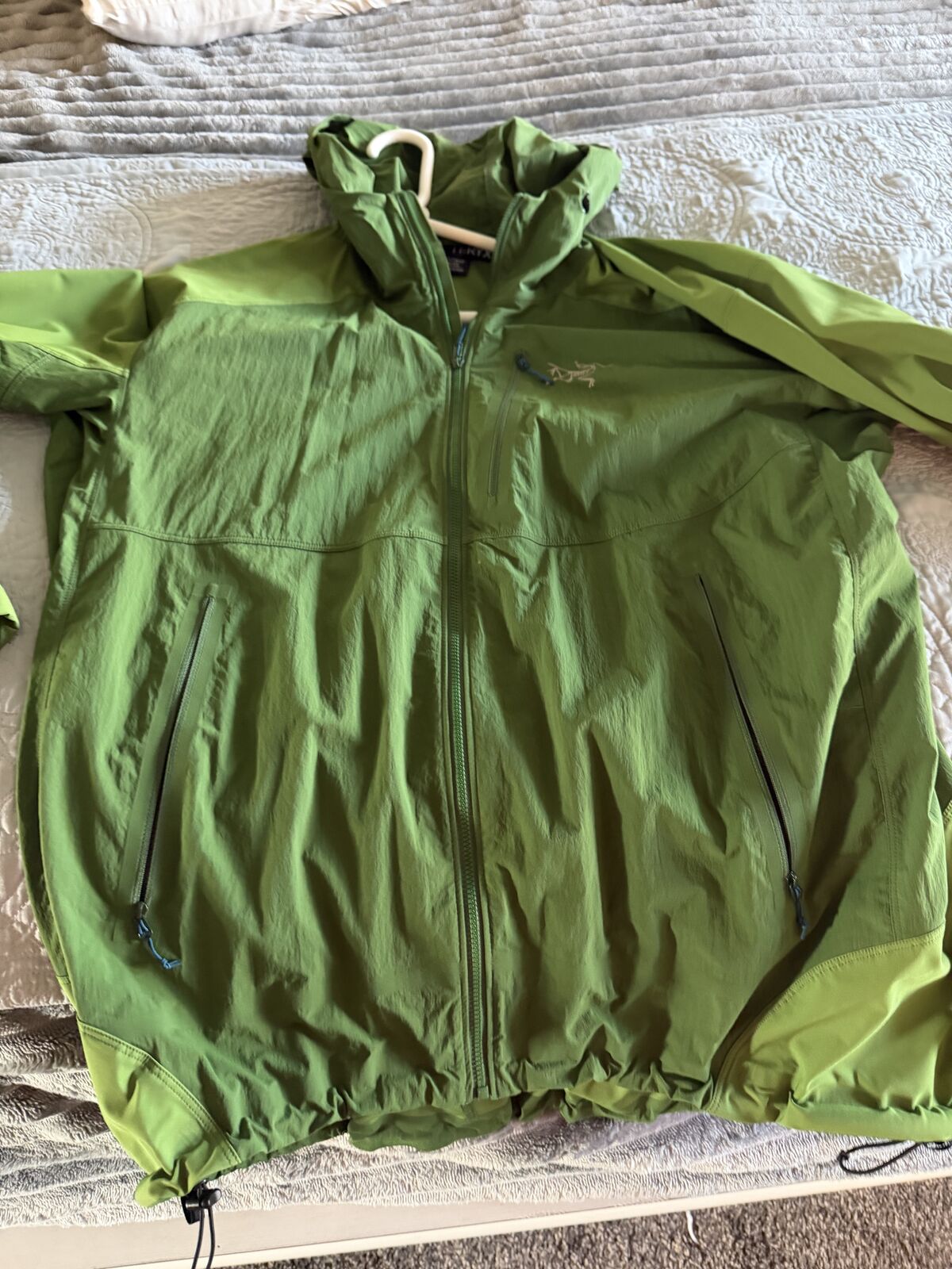 Arcteryx Gamma SL Hydrid Hoody - size XL. In excellent condition, just been sitting in my closet. Great water resistant lightweight windbreaker. Description from the website: Designed for weight-conscious hikers and climbers who move quickly over mixed terrain, the Gamma SL Hybrid Hoody from Arc'teryx features water-resistant Fortius softshell on high-wear areas. TerraTex fabric on the body ensures that it stays as light as possible while remaining super breathable. A helmet-compatible Storm Hood keeps precip from coming in the top and lets you adjust to the perfect size with volume adjusters near your face.