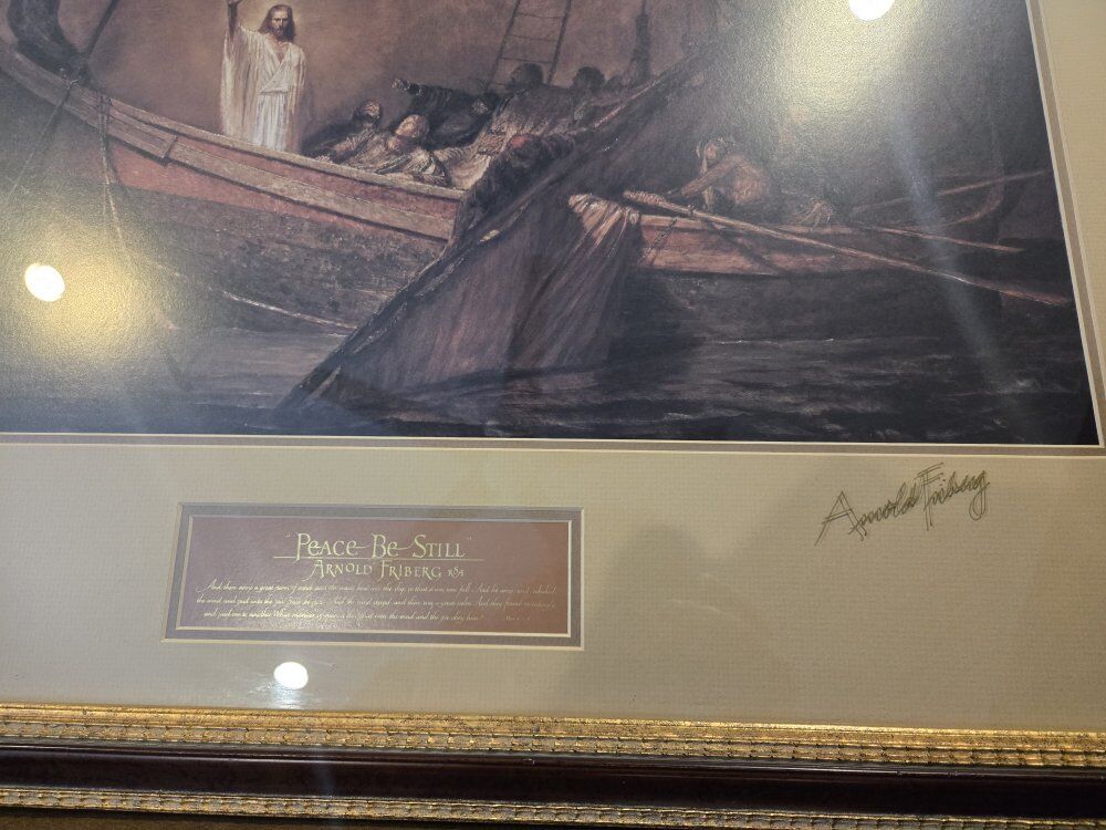 Details: Large Arnold Friberg Print - 'Peace Be Still' - Framed - 33x24 inches.