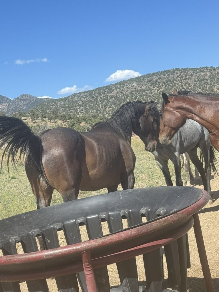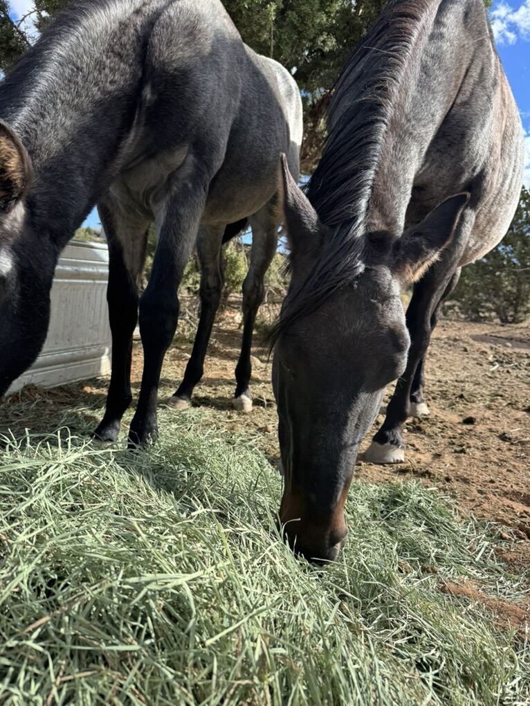 Quarter Horse Mare for sale, her name is Keelah. I have owned her for 3 years now, she has been unhandled for about a year. I have haltered her and lead her from field to field and she does just fine. When I first bought her I saddled her and had her around some cattle and she did great. I have never rode her I was going to refresh her training until I got pregnant. We bred her last year and she has had one successful foal while being with us I’m unsure if she has had others. We bought her from a family friend who passed away and used her as a show horse in her younger years. She is 10yrs old, I included some pictures of her with her foal as well and of her during summer and winter. She has a beautiful coat, and usually has a longer tail but her foal chewed it off🤣 dm me for any questions, if the listing is up she’s still available! I will take the post down if she’s not available. Selling as Grade