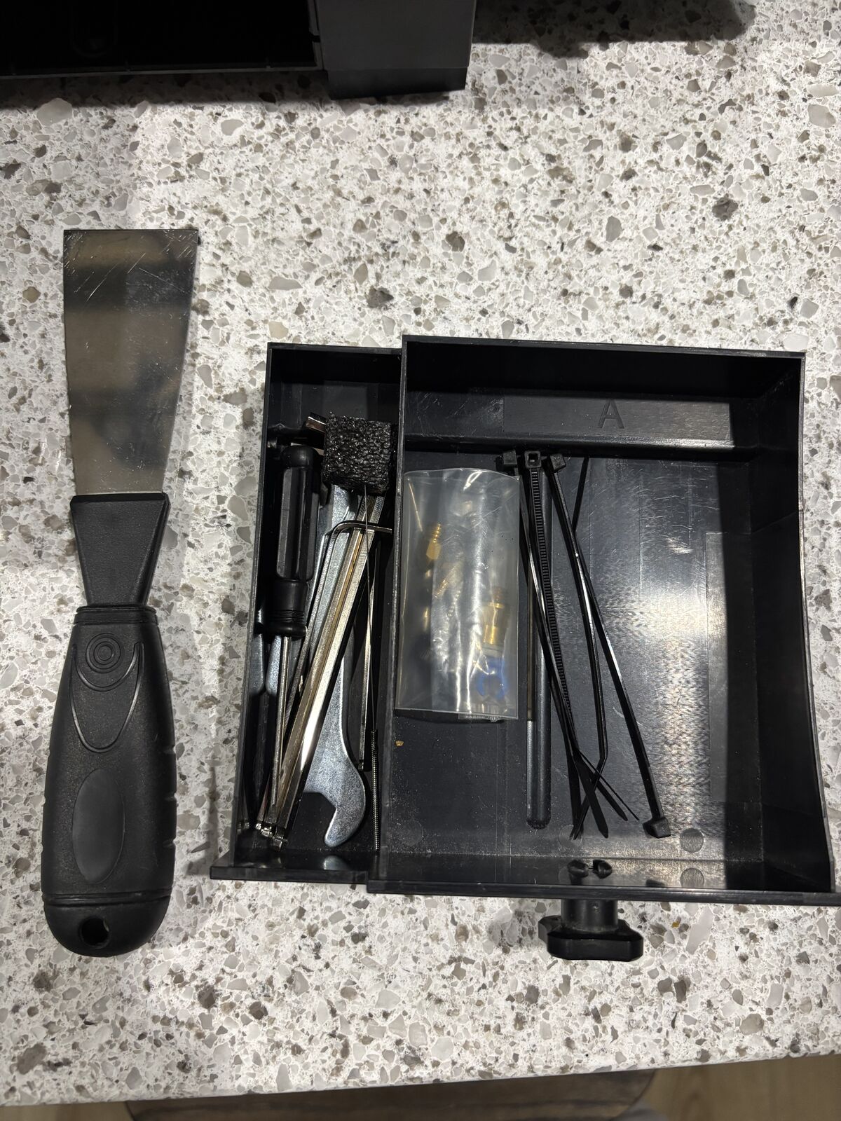 The printer will come with: User Manuel 16gb micro sd Tool Kit Spare parts (including 2 new .4mm nozzles) And a whole lot of Fun!