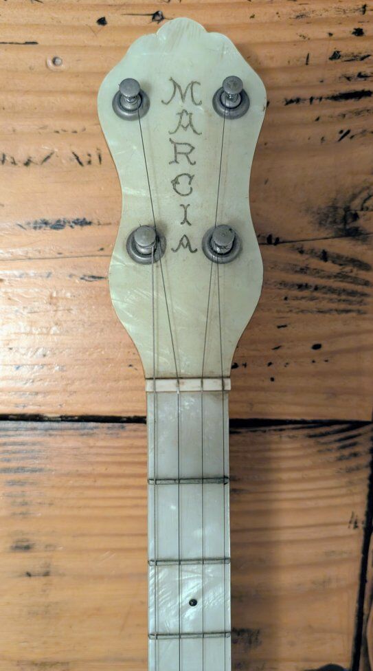 VenmoVintage Marcia 4 string banjo. Great wall decor or for any collector. Needs TLC - doesn't seem to hold tune and back won't stay on independently. no case. $300 obo