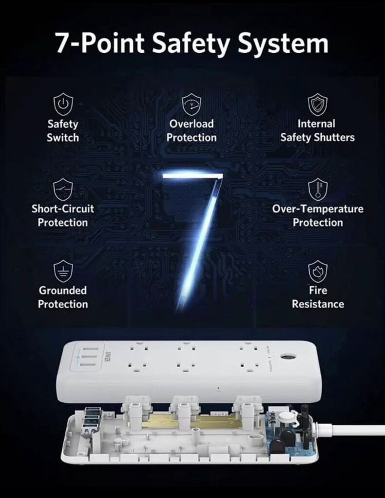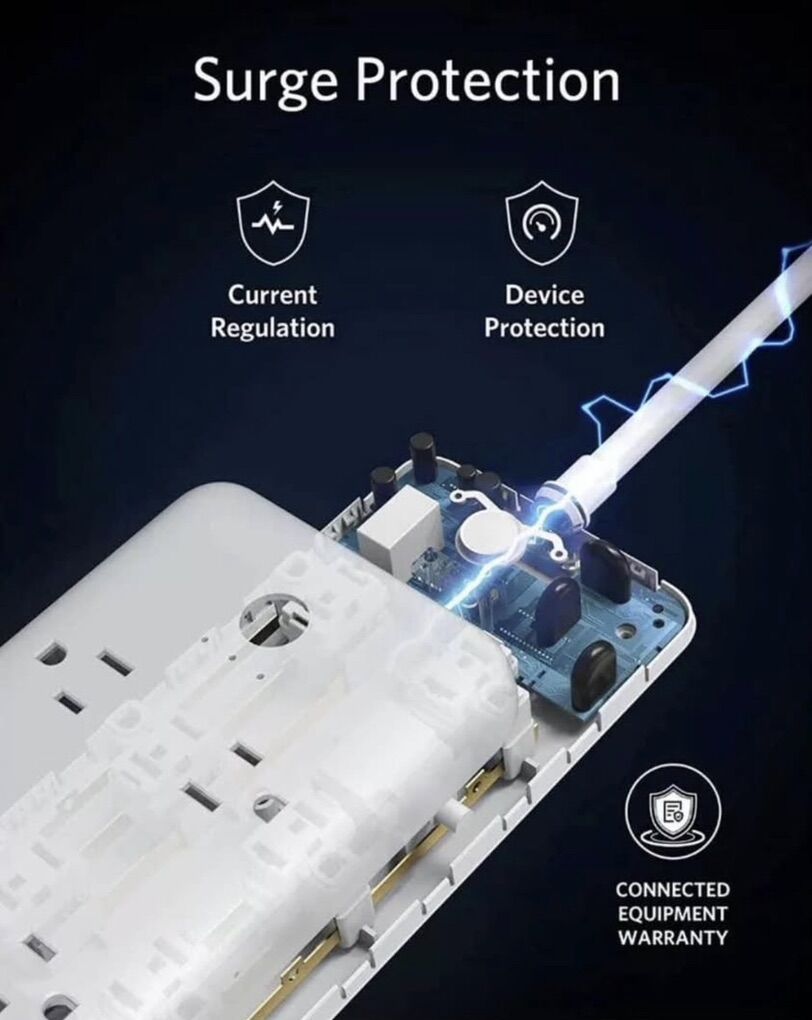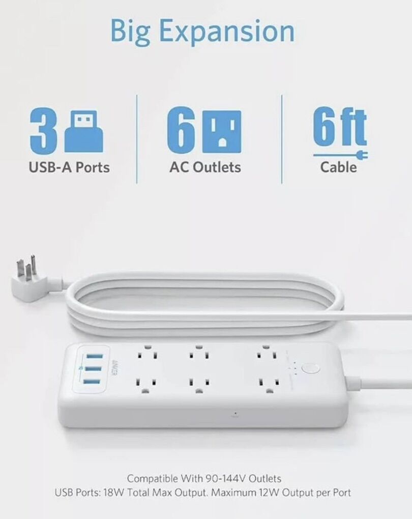 ZelleSurge Protector Power Strip, Anker 6 Outlet & 3 PowerIQ USB Charging Ports USB Power Strip, PowerPort Strip 6 with 6.6 Foot Long Extension Cord, Flat Plug, for Home, Office, and More.