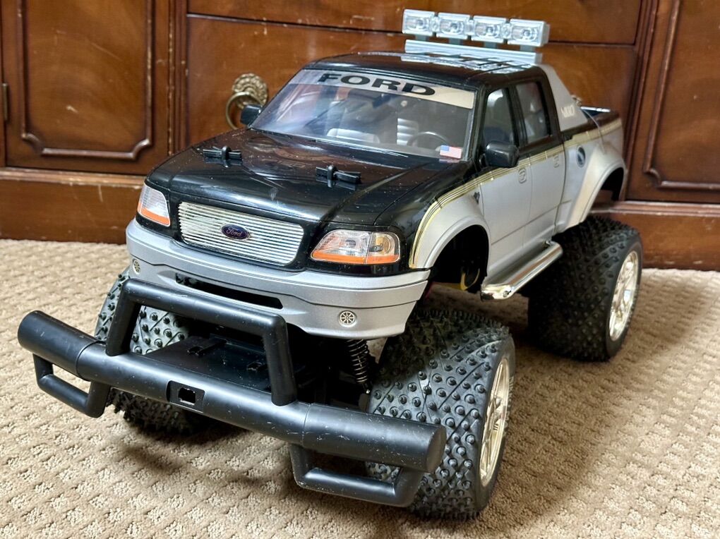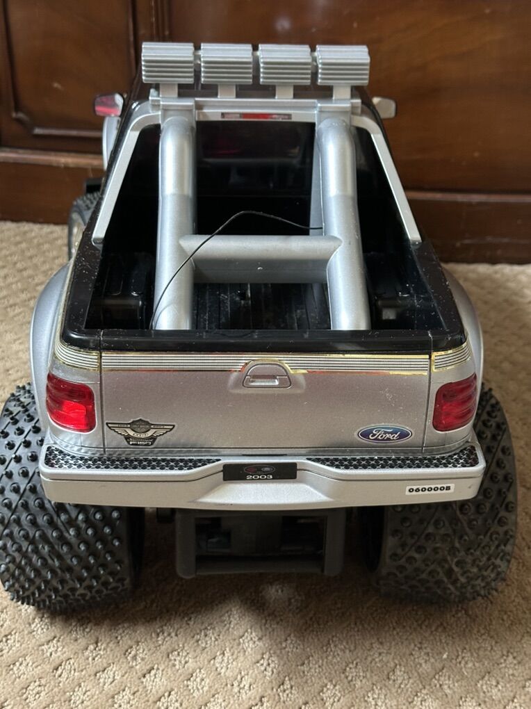 27.5Lx34Hx14W Collector NIKKO Radio Control FORD Supercharged F-150 2003 (Harley Davidson Motor Cycles Logo)used a couple of times and then left in the garage to sit!was able to get tail lights on and move forward for a sec so I know it works just not sure what needs to be done, no manual or box. May just need to be cleaned better or new battery after sitting so long. Awesome gift for person who understands the remote radio control world. Neighbor said they spent over 300.00 on it..