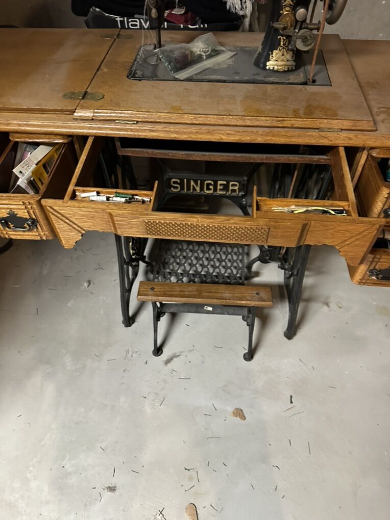 VenmoSinger 1901 vintage sewing machine with oak hideaway cabinet. 500obo