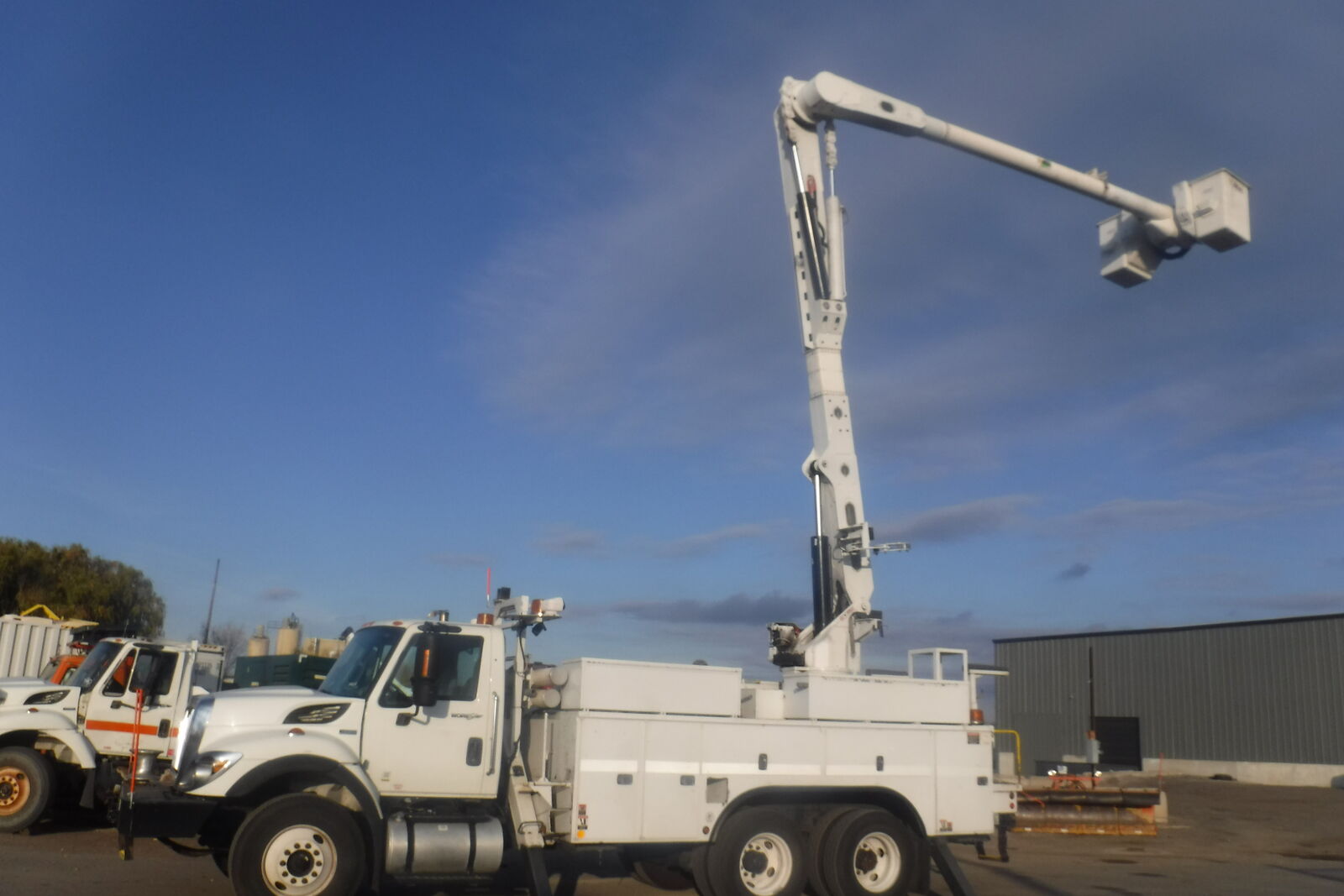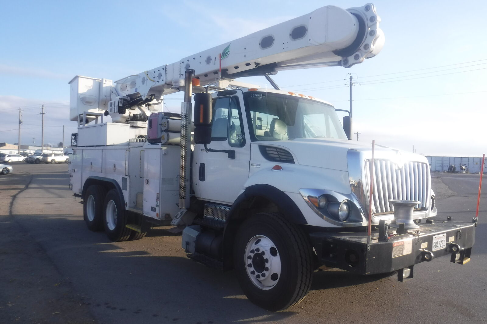 2012 IHC WorkStar7400 tandem axle truck with Altec AM55H manlift. 63Ft. overcenter with 2000 Lb. material handler. 2 man buckets. Current DOT. and aerial inspections. Upper and lower aux. hydraulic outlets. Capstan drive. 4 remote spotlights. 3000 Watt Kubota gen set. 9.3 L. Diesel with 72,358 ACTUAL MILES. Allison AT. PS,AC,CC. 11/R/22.5 radial tires are near new. 58,000 GVW. Hendrickson spring rear suspensin. Side locking rear differentials. One owner well maintained truck from the largest PUC in Southern Californial Spotlessly clean and appears as new. ZERO RUST! Runs, drives and operates perfectly. WORK READY. $34,900. Located in Twin Fallsa Id. Call 208-613-0050.