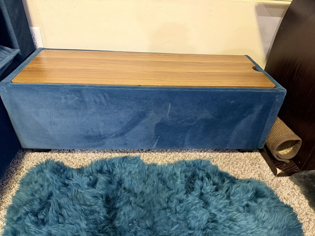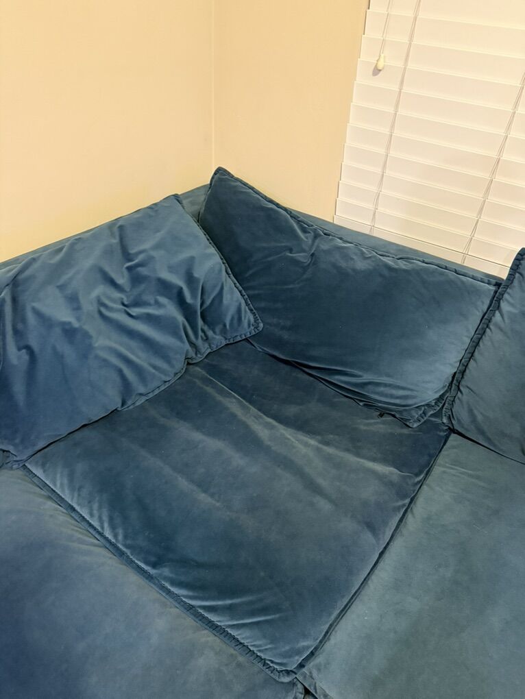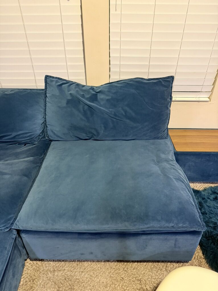 Albany Park Kova L-Shape modular Sectional, Extra bin storage in color blue velvet retails for $2796 plus $400 for storage sectional