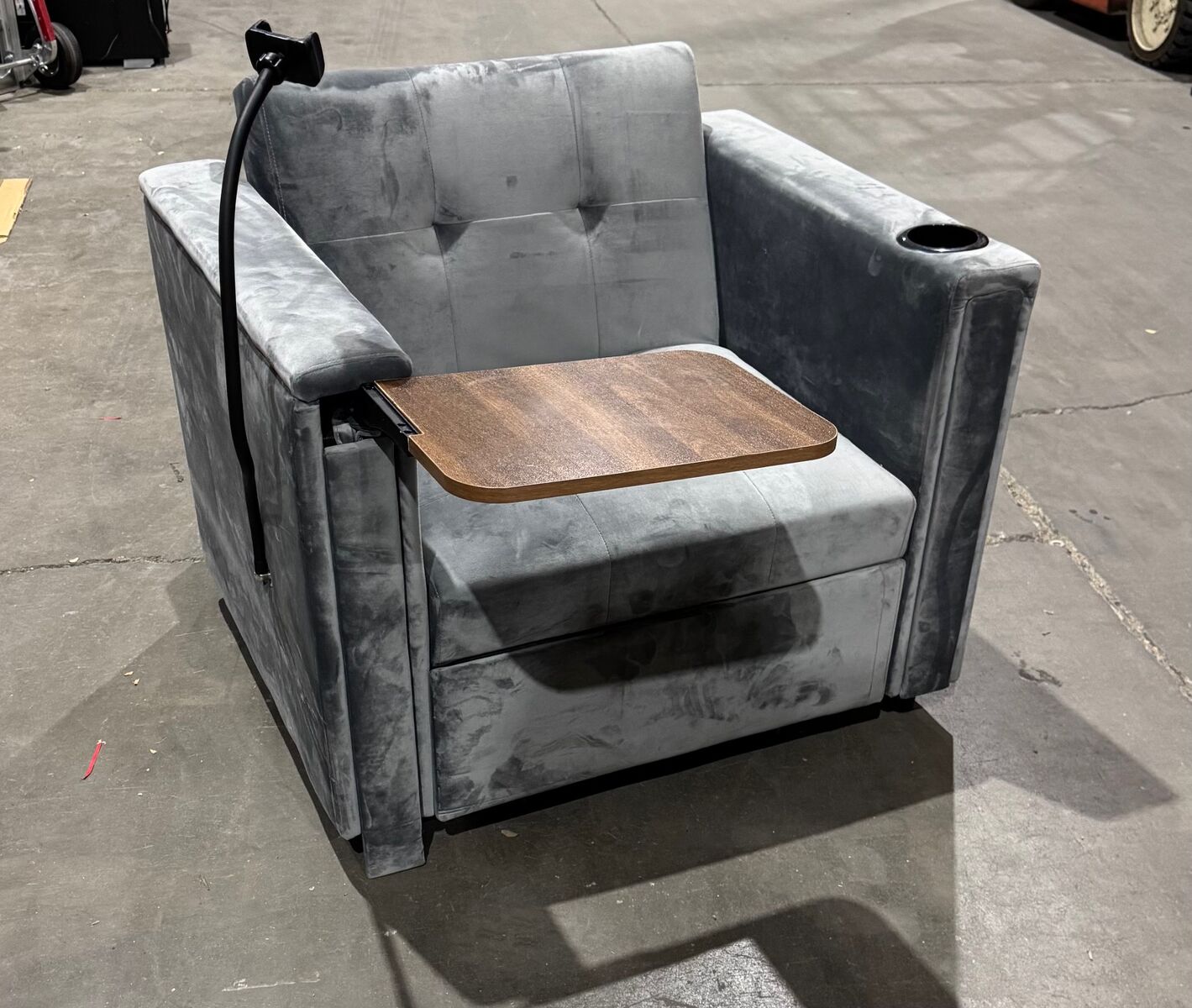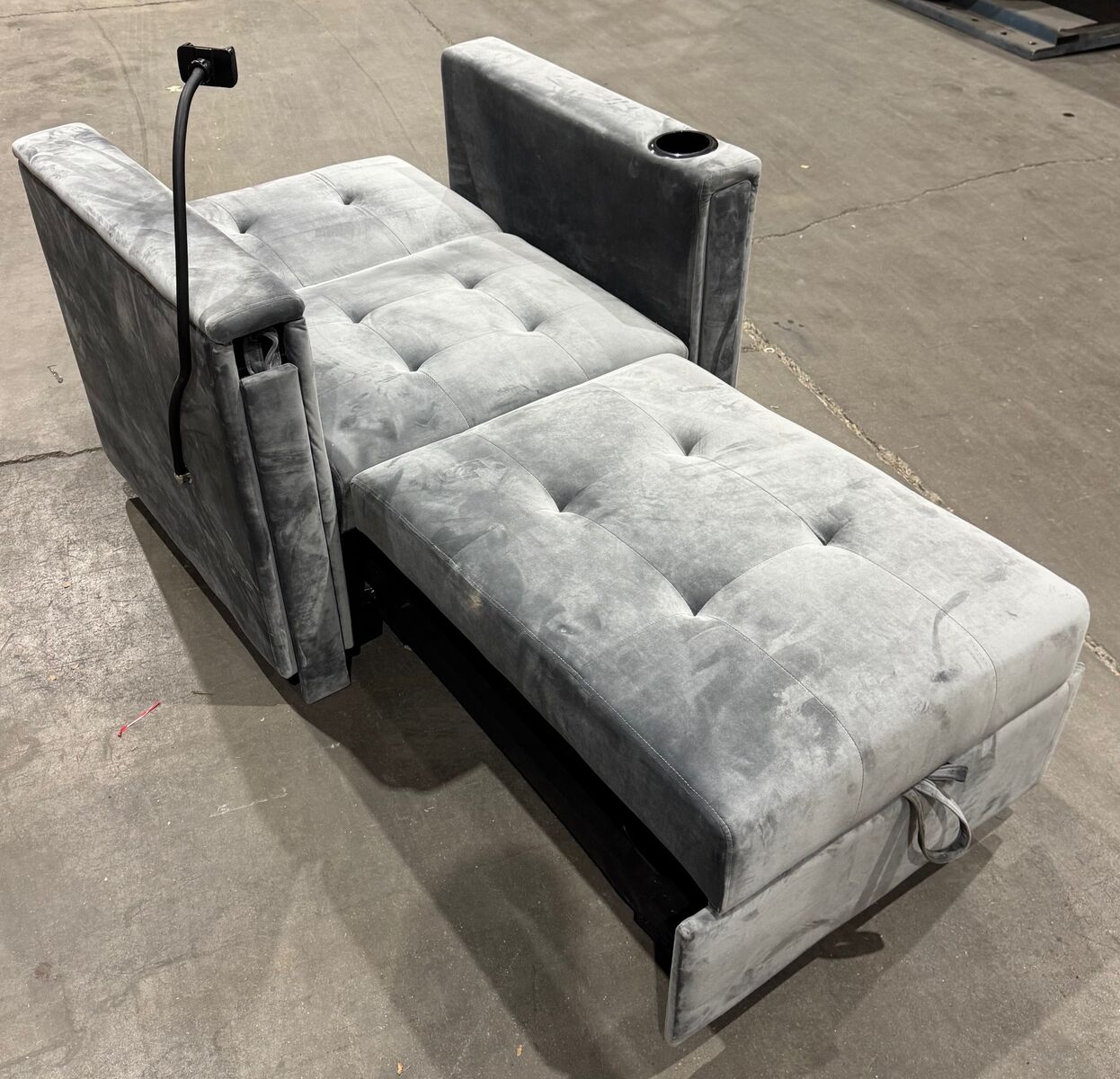 VenmoPics are of actual unit for sale Bought for Daughters Apartment, she changed her mind so near new condition Lower part slides out and pops up for kid sleep surface, tray come out of arm, flexible iphone holder attached