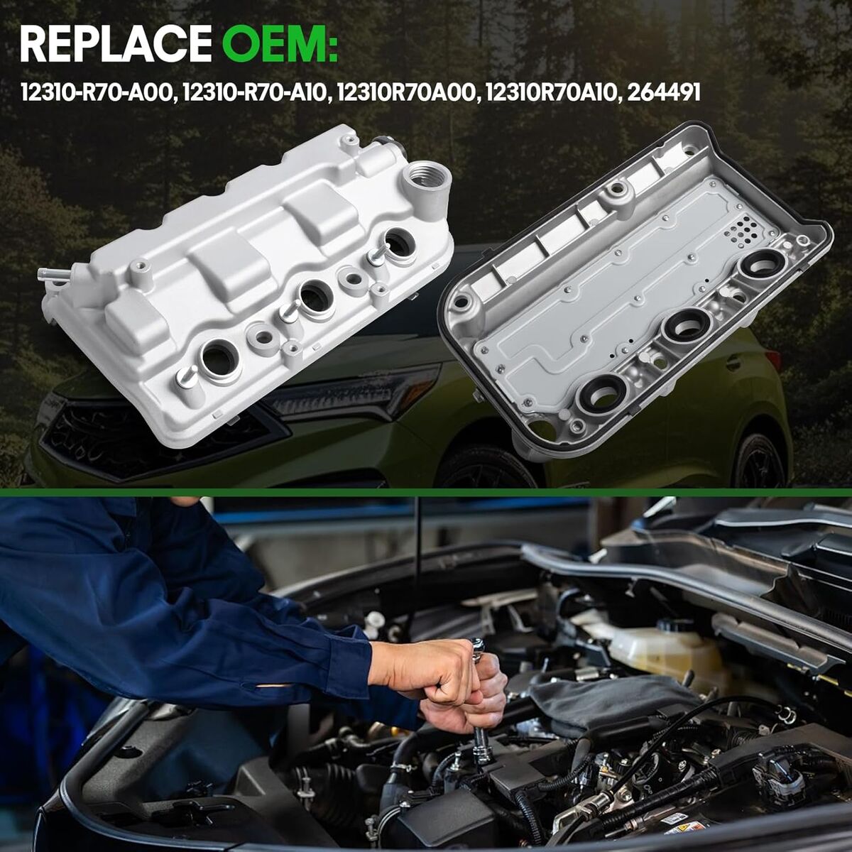 Package: Includes 1 x Front Engine Valve Cover Assembly and 1 x Valve Cover Gasket(Left), replaces OEM part numbers 12310-R70-A00, 12310-R70-A10, 12310R70A00, 12310R70A10, 264491