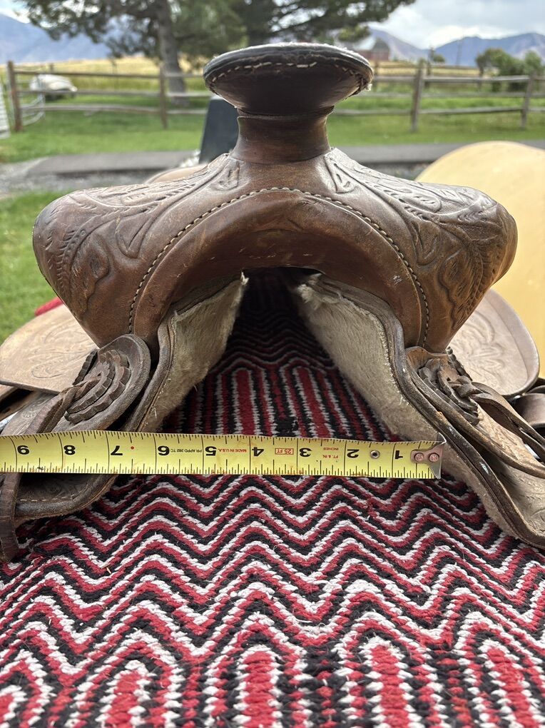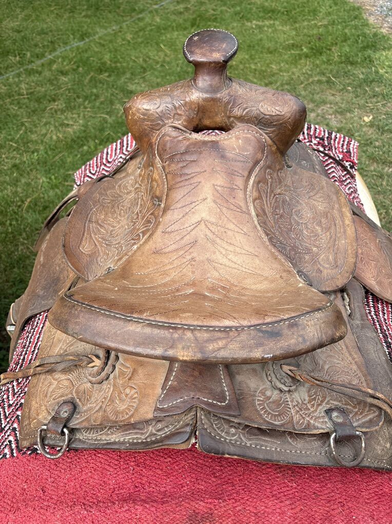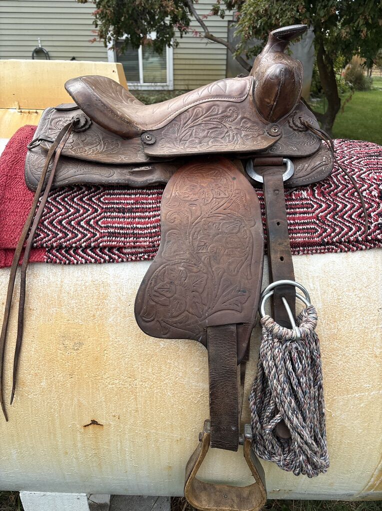 14.5 tooled western saddle. 7 inch gullet. Located 7 miles south of Logan. 175.00
