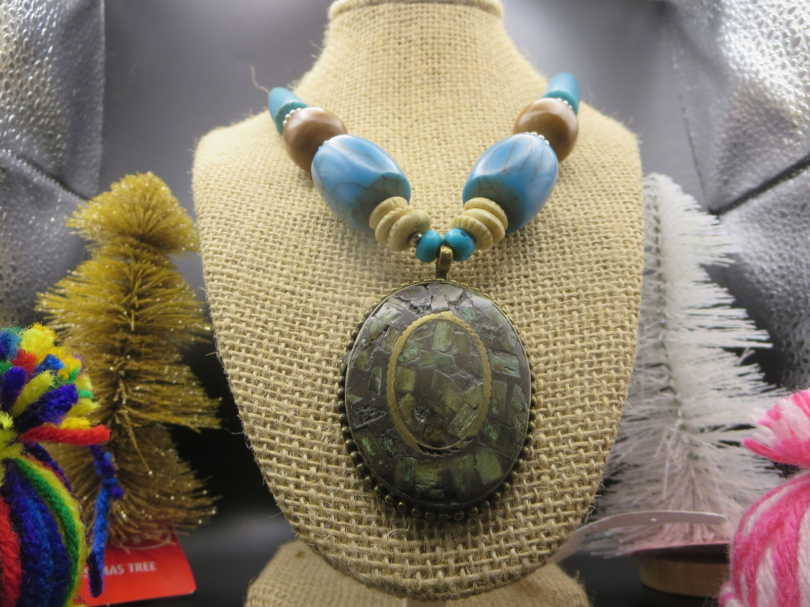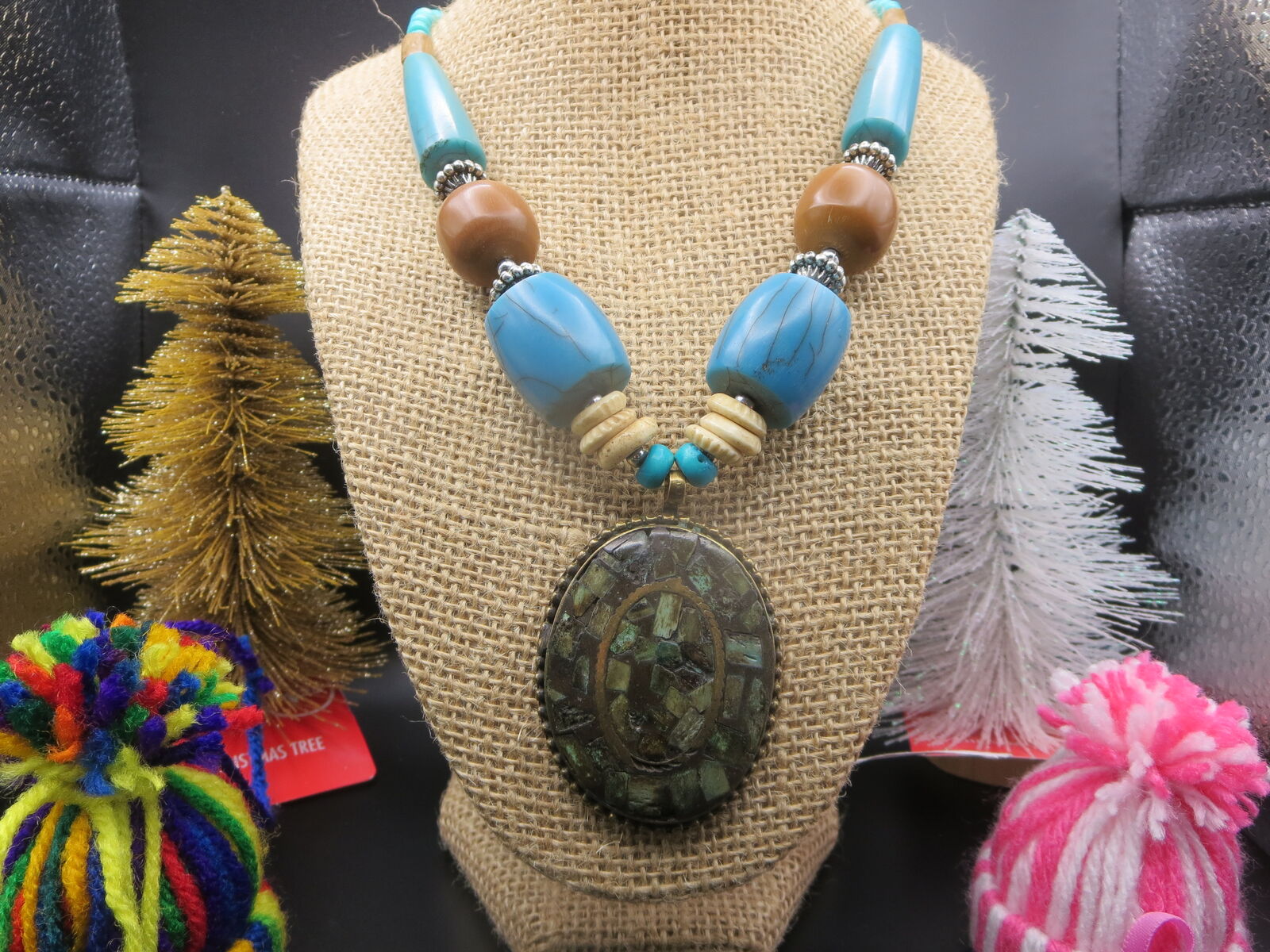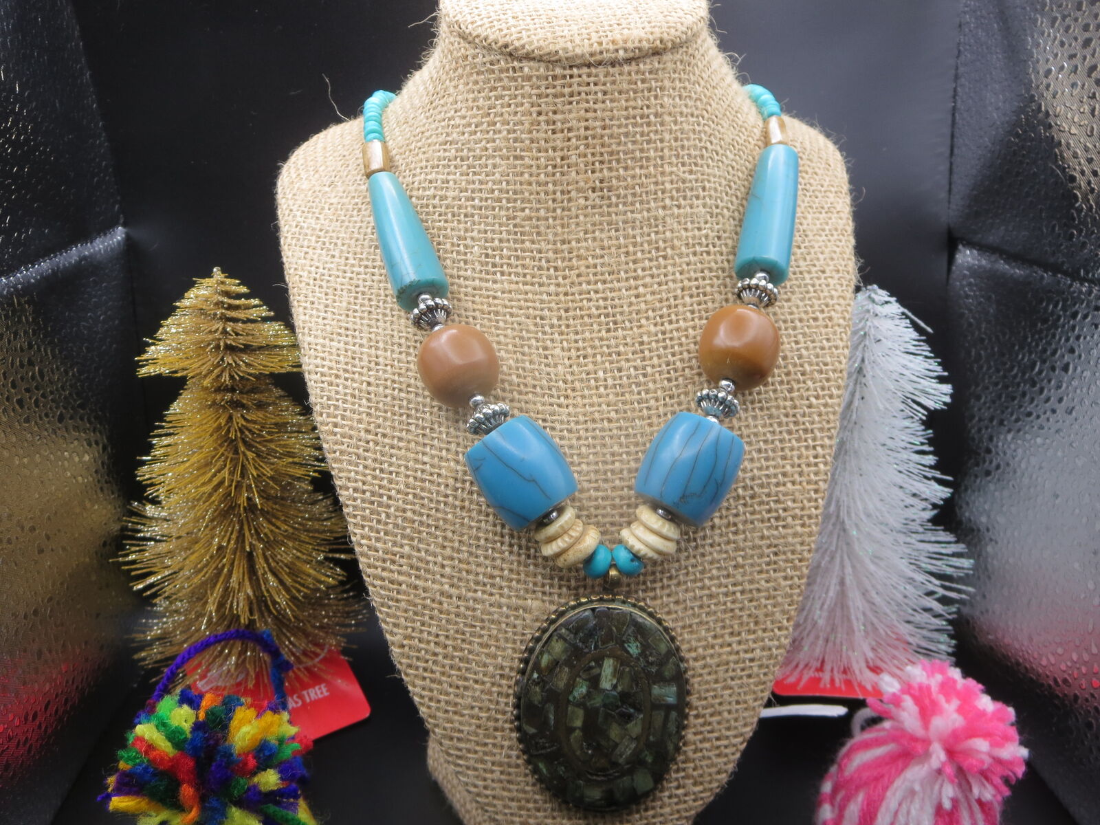 I have a. Turquoise Tibetan Mosaic stone long necklace for sale call or text only thanks for looking D.